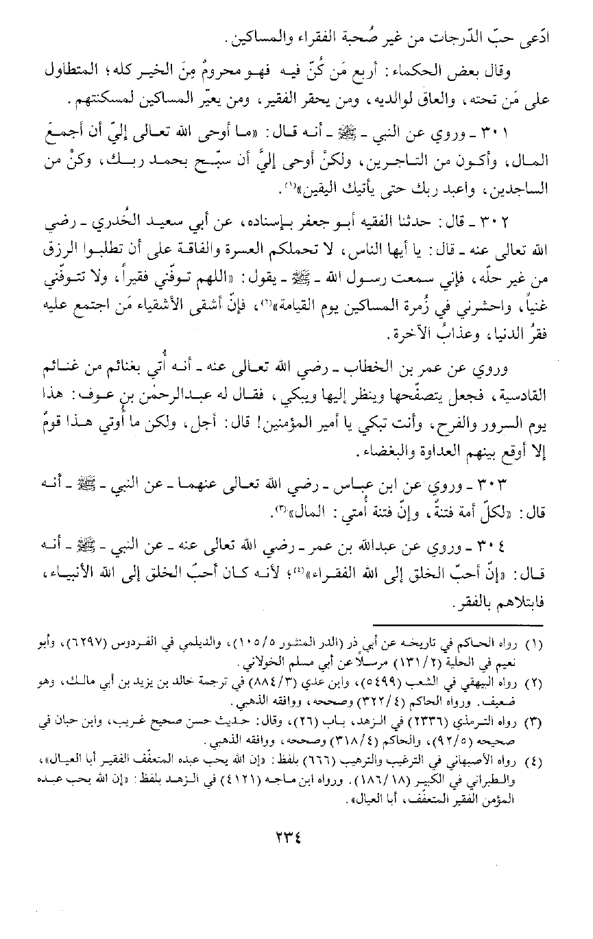 302 - عَنْ أَبِي سَعِيدٍ الْخُدْرِيِّ رَضِيَ اللَّهُ تَعَالَى عَنْهُ , أَنَّهُ قَالَ: يَا أَيُّهَا النَّاسُ لَا تَحْمِلْكُمُ الْعُسْرَةُ عَلَى أَنْ تَطْلُبُوا الرِّزْقَ مِنْ غَيْرِ حِلَّةٍ، فَإِنِّي سَمِعْتُ رَسُولَ اللَّهِ صَلَّى اللَّهُ عَلَيْهِ وَسَلَّمَ يَقُولُ: «اللَّهُمَّ تَوَفَّنِي فَقِيرًا وَلَا تَتَوَفَّنِي غَنِيًّا، وَاحْشُرْنِي فِي زُمْرَةِ الْمَسَاكِينِ يَوْمَ الْقِيَامَةِ، فَإِنَّ أَشْقَى الْأَشْقِيَاءِ مَنِ اجْتَمَعَ عَلَيْهِ فَقْرُ الدُّنْيَا وَعَذَابُ الْآخِرَةِ» .