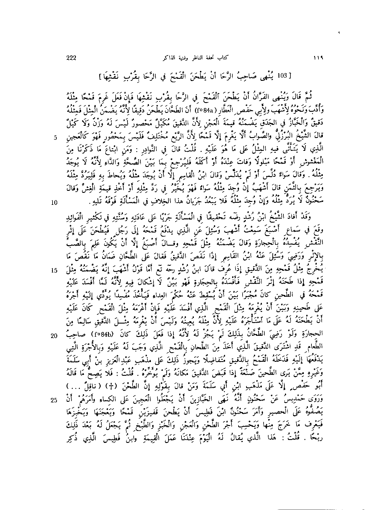وقد أفاد الشيخ ابن رشد رضه تحقيقا في المسألة جريا على عادته وسنته في تكثير الفوائد وقع في سماع أصبغ سمعت أشهب وسئل عن الذي يدفع قمحه إلى رجل فيطحن على إثر النقش يفسده بالحجارة وقال يضمنه مثل قمحه وقال أصبغ إلا أن يكون علم بالصب بالإثر ورضي وسئل عنه ابن القاسم إذا نقص الدقيق فقال على الطحان ضمان ما نقص ما يخرج مثل قمحه من الدقيق إذا عرف قال ابن رشد رحه تع أما قول أشهب إنه يضمنه مثل قمحه إذا طحنه إثر النقش فأفسده بالحجارة فهو بين لا إشكال فيه لأنه لما أفسد عليه قمحه في الطحين كان مجبرا بين أن يسقط عنه حكم العداء فيأخذ مفسدا يؤدي إليه أجره على طحينه وبين أن يغرمه مثل القمح الذي أفسد عليه فإن أغرمه مثل القمح كان عليه أن يطحنه له على ما استأجره عليه لأن مثله يعينه وليس أن يغرمه مثل الدقيق سالما من الحجارة ولو رضي الطحان بذلك لم يجز له لأنه إذا فعل ذلك كان صاحب الطعام قد اشترى الدقيق الذي أخذ من الطحان بالقمح الذي وجب له عليه وبالأجرة التي يدفعها إليه فدخله القمح بالدقيق متفاضلا ويجوز ذلك على مذهب عبد العزيز بن أبي سلمة وغيره ممن يرى الطحين صنعةً إذا قبض الدقيق مكانه ولم يؤخره. قلت: فلا يصح ما قاله أبو حفص إلا على مذهب ابن أبي سلمة ومن قال بقوله إن الطحن (ناقل ... ) وروى حمديس عن سحنون أنه نهى الخبازين أن يجعلوا العجين على الكساء وأمرهم أن يصفوه على الحصير وأمر سحنون ابن فطيس أن يطحن قفيزين قمحا ويعجنها ويخبزها فيعرف ما خرج منها ويحسب أجر الطحن والعجن والخبز والطبخ ثم يجعل له بعد ذلك ربحًا. قلت: هذا الذي يقال له اليوم عندنا عمل القيمة وابن فطيس الذي ذكر