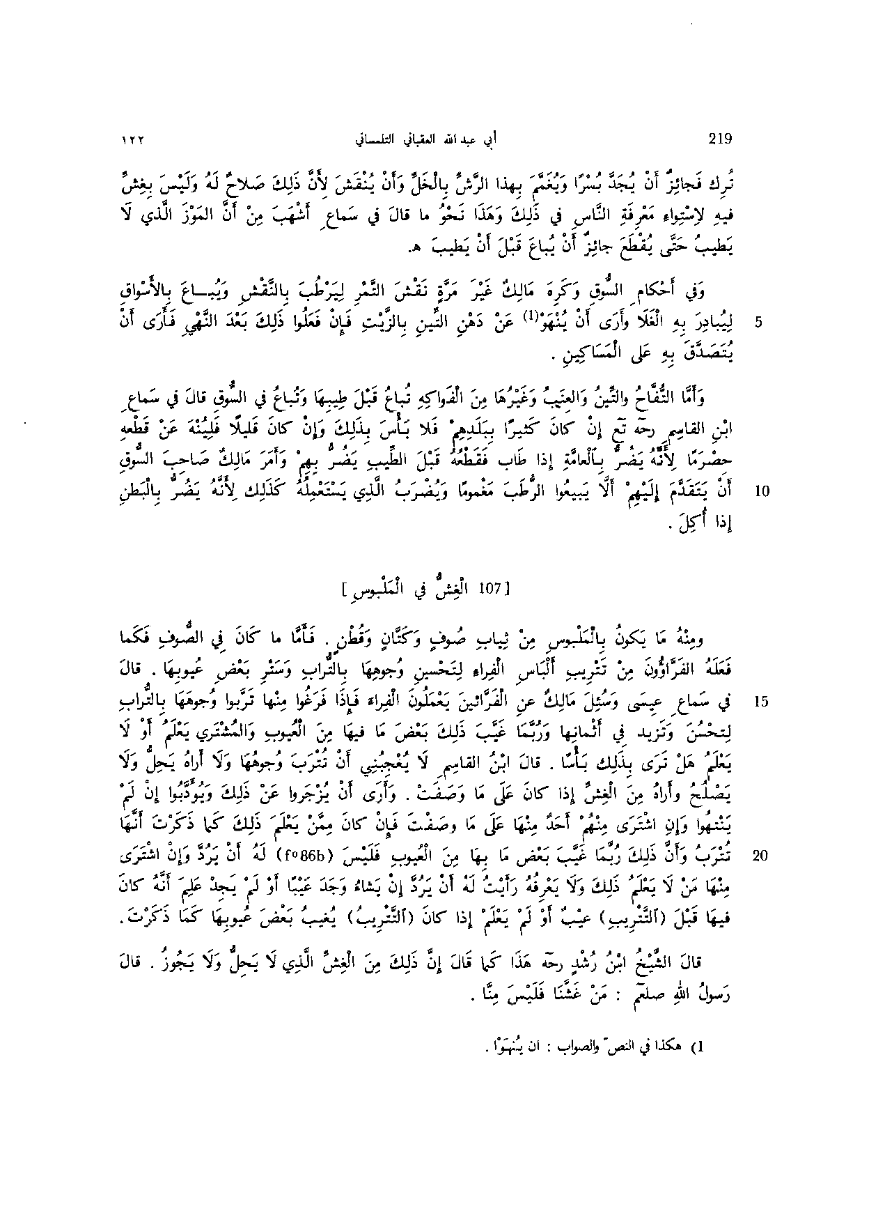 قال الشيخ ابن رشد رح هذا ما قال إن ذلك من الغش الذي لا يحل ولا يجوز. قال رسول الله صلعم: من غشنا فليس منا.