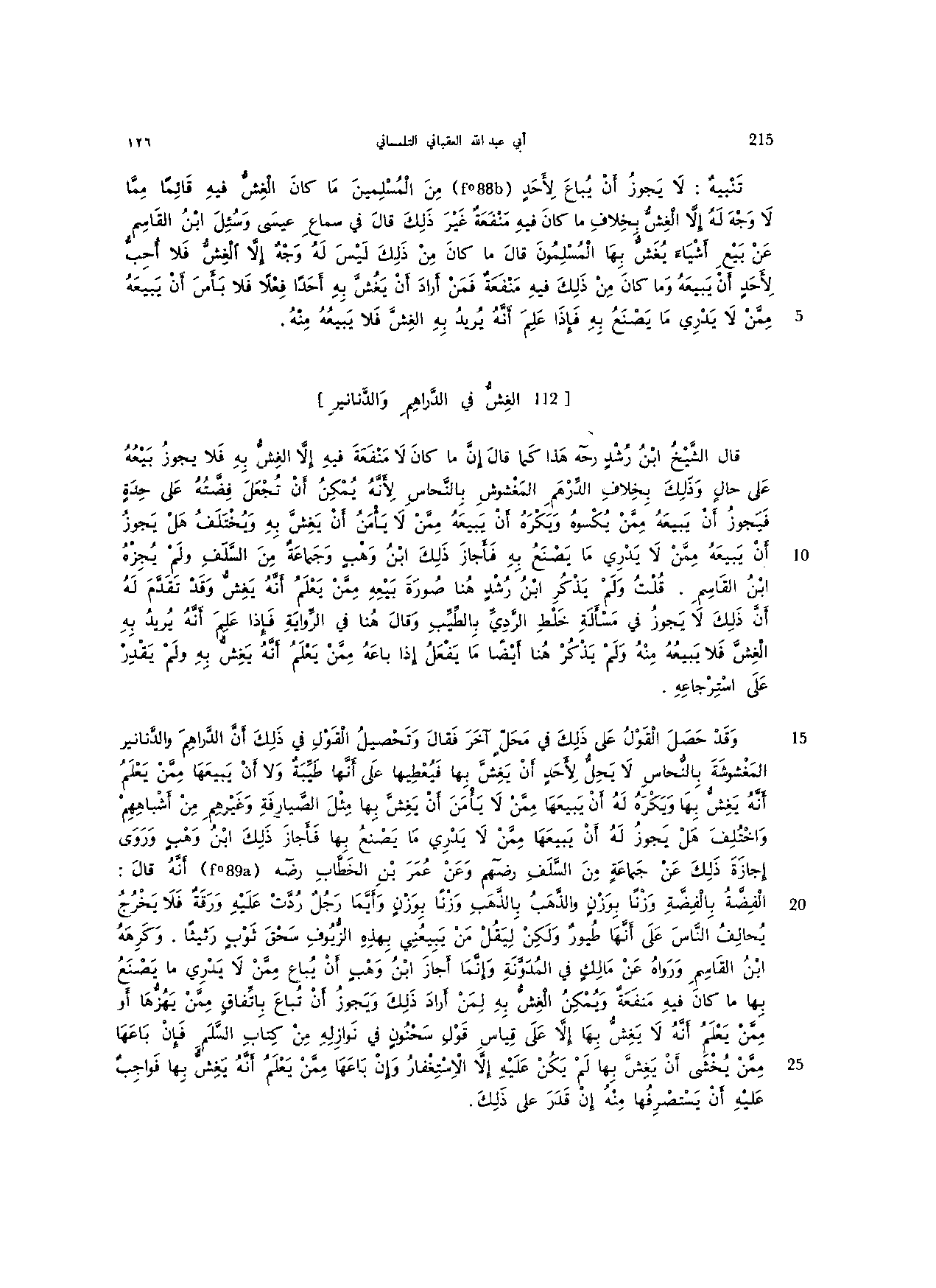 وقد حصل القول على ذلك في محل آخر فقال وتحصيل القول في ذلك أن الدراهم والدنانير المغشوشة بالنحاس لا يحل لأحد أن يغش بها فيعطيها على أنها طيبة ولا أن يبيعها ممن يعلم أنه يغش بها ويكره له أن يبيعها ممن لا يأمن أن يغش بها مثل الصيارفة وغيرهم من أشباههم واختلف هل يجوز له أن يبيعها ممن لا يدري ما يصنع بها فأجاز ذلك ابن وهب وروى إجازة ذلك عن جماعة من السلف رضهم وعن عمر بن الخطاب رضه أنه قال: الفضة بالفضة وزنا بوزن والذهب بالذهب وزنا بوزن وأيما رجل ردت عليه ورقة فلا يخرج يحالف الناس على أنها طيور ولكن ليقل من يبيعني بهذه الزيوف سحق ثوب رثيثا. وكرهه ابن القاسم ورواه عن مالك في المدونة وإنما أجاز ابن وهب أن يباع ممن لا يدري ما يصنع بها ما كان فيه منفعة ويمكن الغش به لمن أراد ذلك ويجوز أن تباع باتفاق ممن يهزها أو ممن يعلم أنه لا يغش بها إلا على قياس قول سحنون في نوازله من كتاب السلم فإن باعها ممن يخشى أن يغش بها لم يكن عليه إلا الاستغفار وإن باعها ممن يعلم أنه يغش بها فواجب عليه أن يستصرفها منه إن قدر على ذلك.