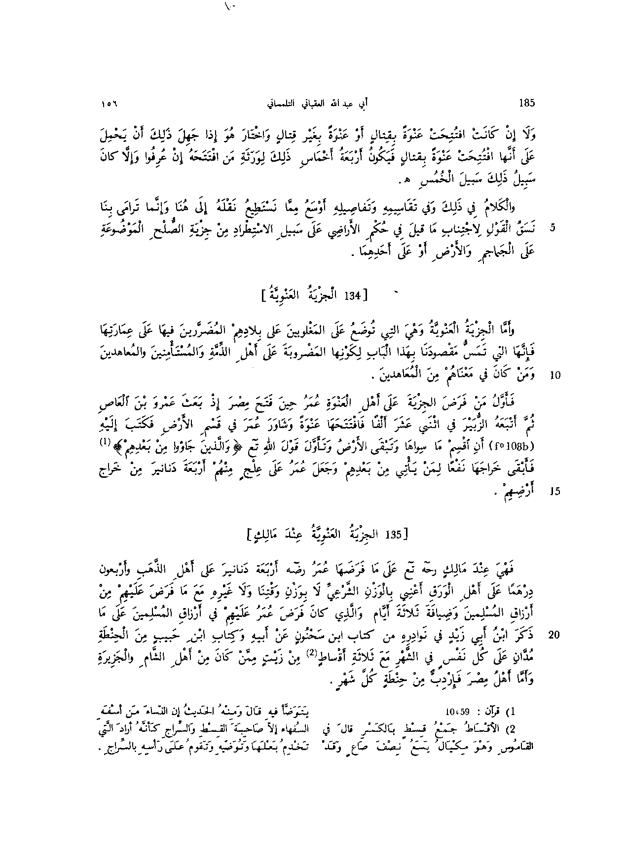 الجزية العنوية عند مالك