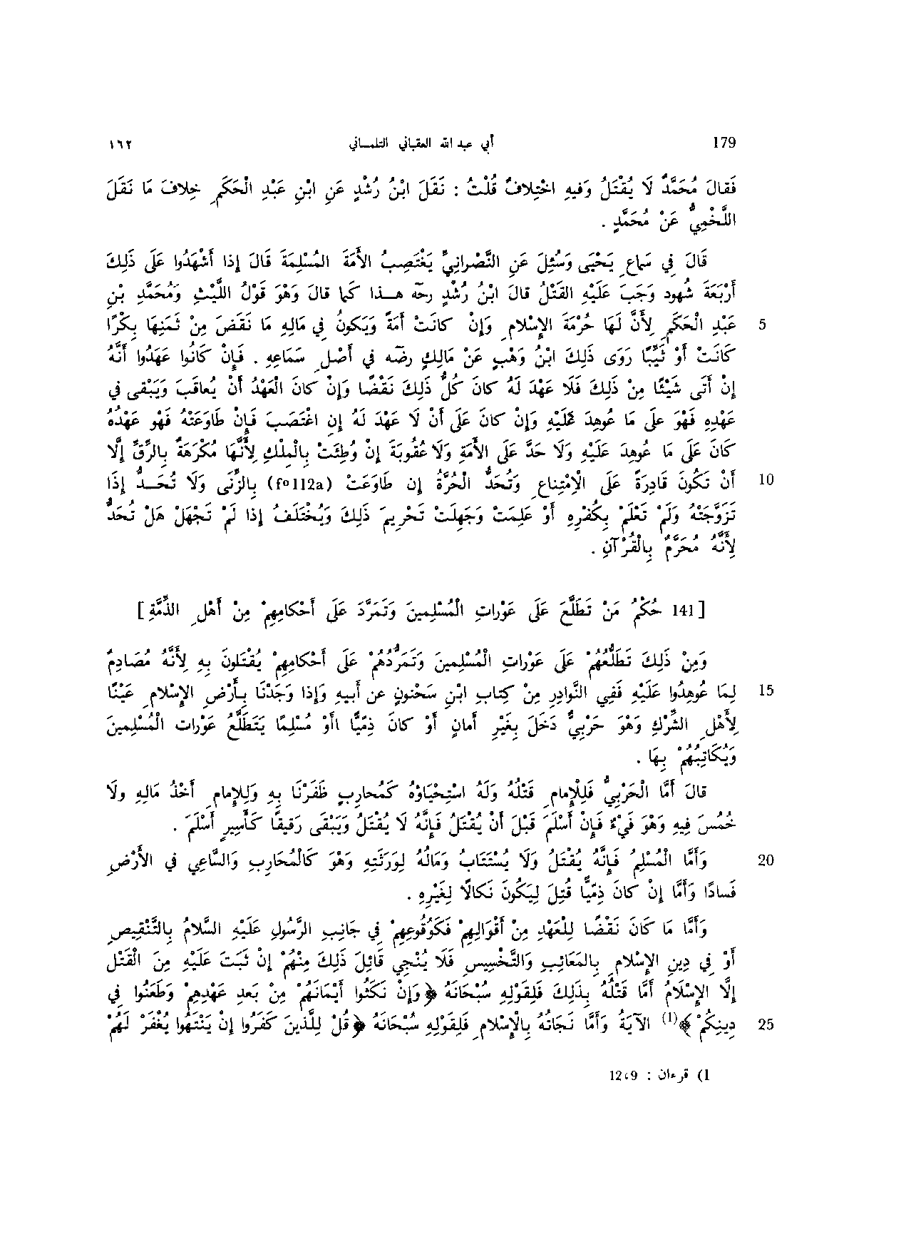 فقال محمد لا يقتل وفيه اختلاف قلت: نقل ابن رشد عن ابن عبد الحكم خلاف ما نقل اللخمي عن محمد.