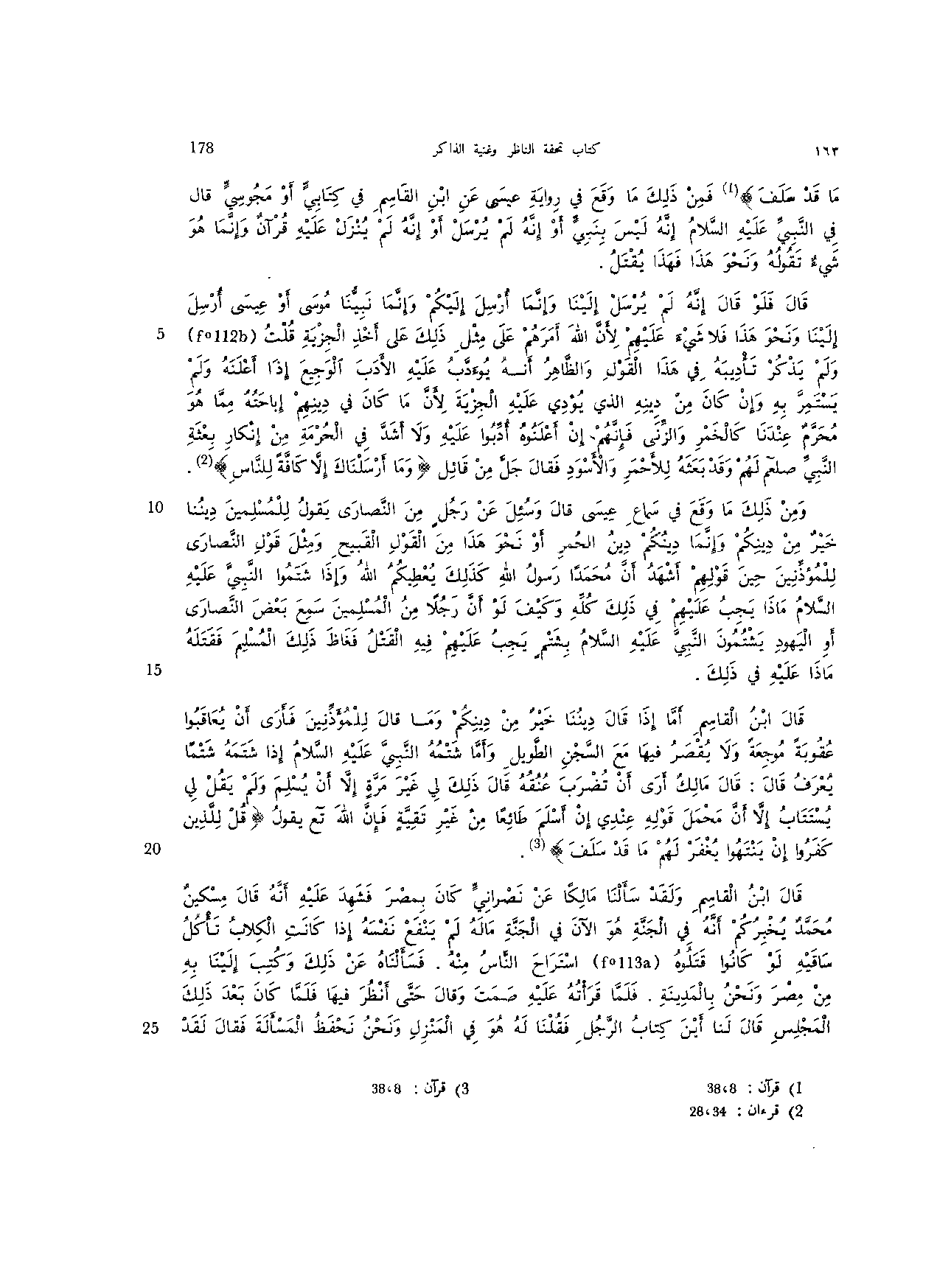 قال ابن القاسم ولقد سألنا مالكا عن نصراني كان بمصر فشهد عليه أنه قال مسكين محمد يخبركم أنه في الجنة هو الآن في الجنة ماله لم ينفع نفسه إذا كانت الكلاب تأكل ساقيه لو كانوا قتلوه استراح الناس منه. فسألناه عن ذلك وكتب إلينا به من مصر ونحن بالمدينة. فلما قرأته عليه صمت وقال حتى أنظر فيها فلما كان بعد ذلك المجلس قال لنا أين كتاب الرجل فقلنا له هو في المنزل ونحن نحفظ المسألة فقال لقد