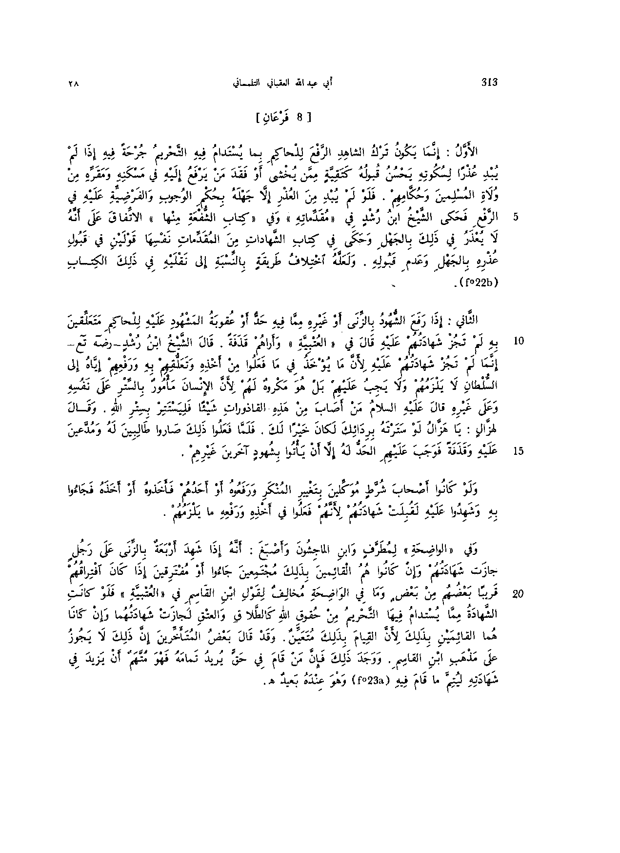 الثاني: إذا رفع الشهود بالزنى أو غيره مما فيه حد أو عقوبة المشهود عليه للحاكم متعلقين به لم تجز شهادتهم عليه قال في " التعيبية" وأراهم قذفة. قال الشيخ ابن رشد -رضه تع- إنه لم تجز شهادتهم عليه لأن ما يؤخذ في ما فعلوا من أخذه وتعلقهم به ورفعهم إياه إلى السلطان لا يلزمهم ولا يجب عليهم بل هو مكروه لهم لأن الإنسان مأمور بالستر على نفسه وعلى غيره قال عليه السلام من أصاب من هذه القاذورات شيئا فليستتر بستر الله. وقال لهزال: يا هزال لو سترته بردائك لكان خيرا لك. فلما فعلوا ذلك صاروا طالبين له ومدعين عليه وقذفة فوجب عليهم الحد له إلا أن يأتوا بشهود آخرين غيرهم.