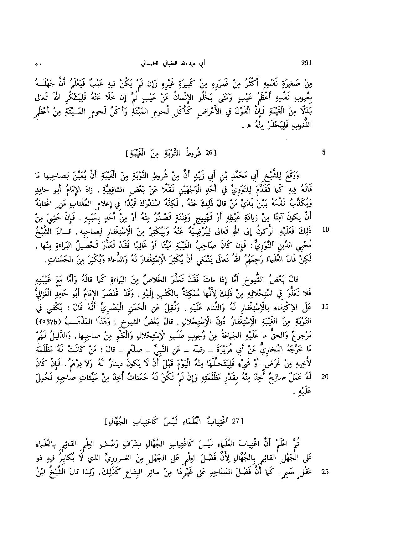 ثم اعلم أن اغتياب العلماء ليس كاغتياب الجهال لشرف وصف العلم القائم بالعلماء على الجهل القائم بالجهال لأن فضل العلم على الجهل من الضروري الذي لا يكابر فيه ذو عقل سليم. كما أن فضل المساجد على غيرها من سائر البقاع كذلك. ولذا قال الشيخ ابن