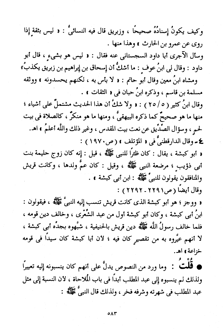قُلْتُ: وما ورد من النصوص يدلُّ على أنهم كان ينسبونه إِليه تعبيرًا ولذلك لم ينسبوه إِلى عبد المطلب