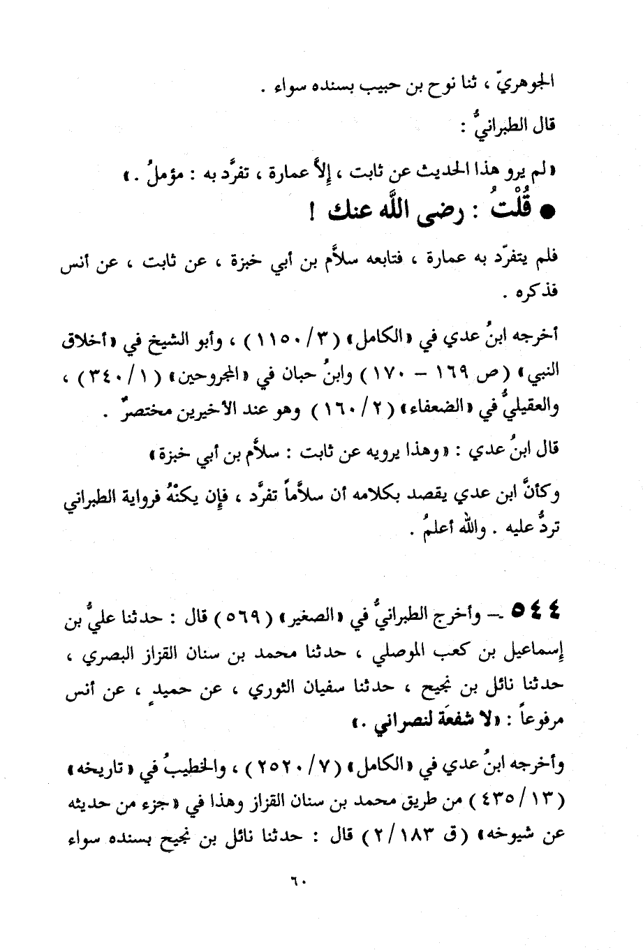 قال ابنُ عدي: "وهذا يرويه عن ثابت: سلاَّم بن أبي خبزة"