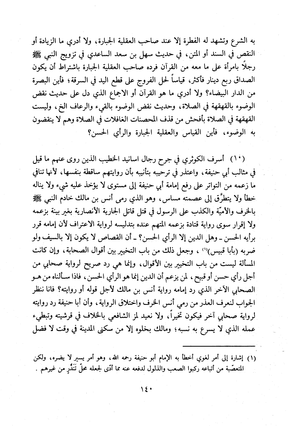 (1) إشارة إلى أمر لغوي أخطا به الإمام أبو حنيفة رحمه الله، وهو أمر يسير لا يضره، ولكن المتعصّبة من أتباعه ركبوا الصعب والذلول لدفعه عنه مما أدى لجعله محلْ تَنَدِّرٍ من غيرهم.