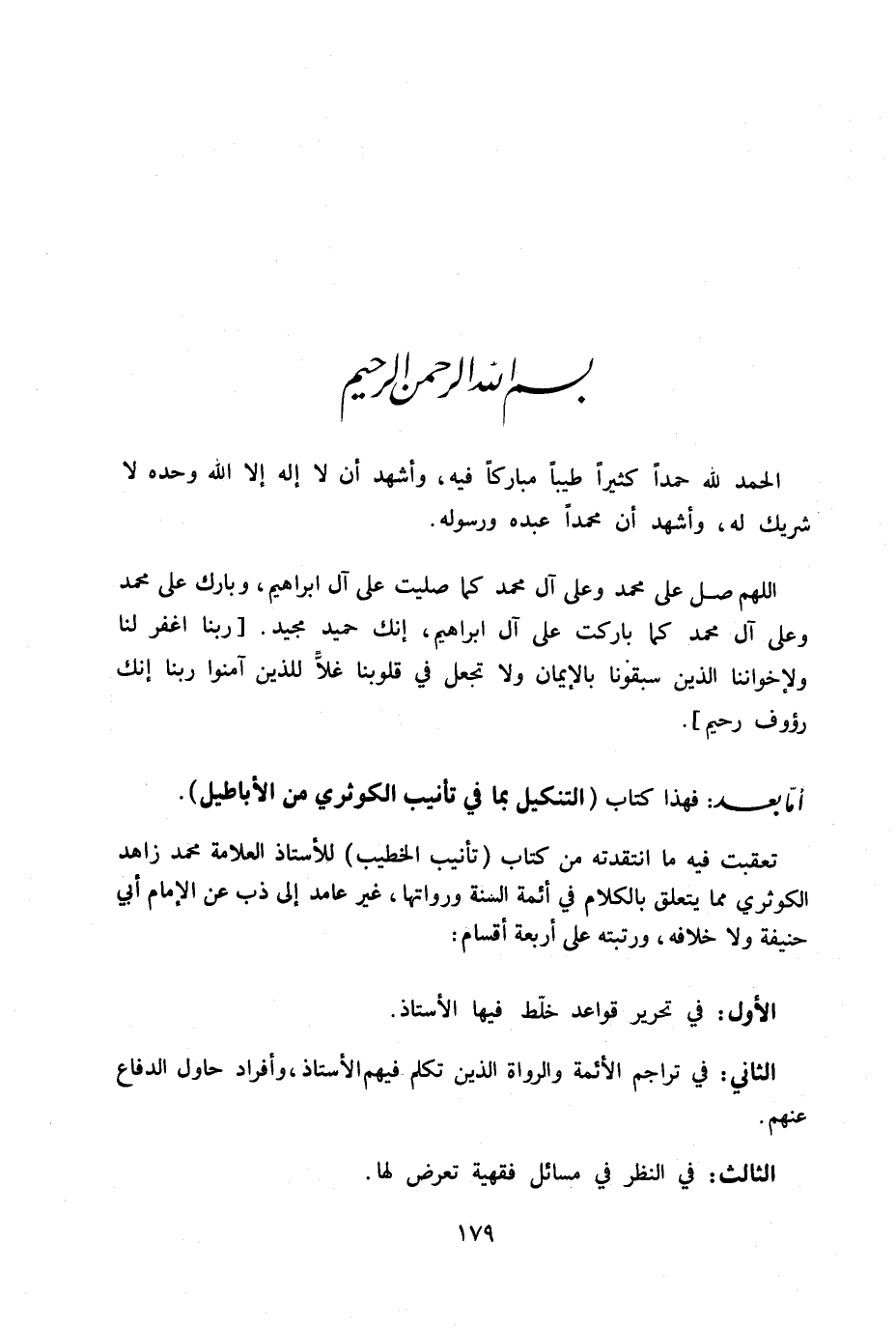 تعقبت فيه ما انتقدته من كتاب (تأنيب الخطيب) للأستاذ العلامة محمد زاهد الكوثري مما يتعلق بالكلام في أئمة السنة ورواتها، غير عامد إلى ذب عن الإمام أبو حنيفة ولا خلافه، ورتبته إلى أربعة أقسام: