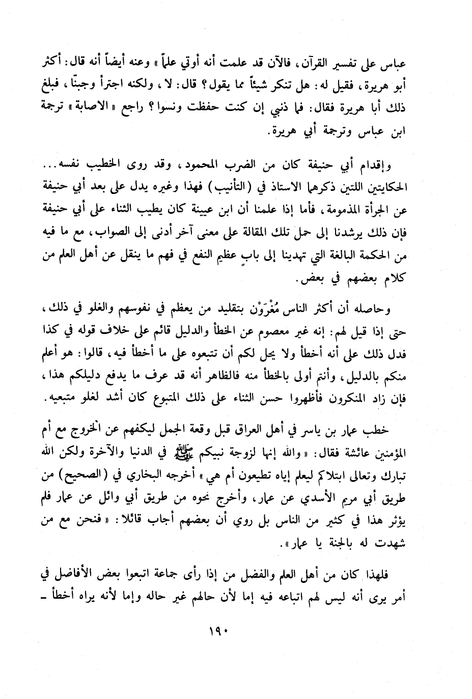عباس على تفسير القرآن، فالآن قد علمت أنه أوتي علماً» وعنه أيضاً أنه قال: أكثر أبو هريرة، فقيل له: هل تنكر شيئاً مما يقول؟ قال: لا، ولكنه اجترأ وجبنا، فبلغ ذلك أبا هريرة فقال: فما ذنبي إن كنت حفظت ونسوا؟ راجع الإصابة ترجمة ابن عباس وترجمة أبي هريرة.