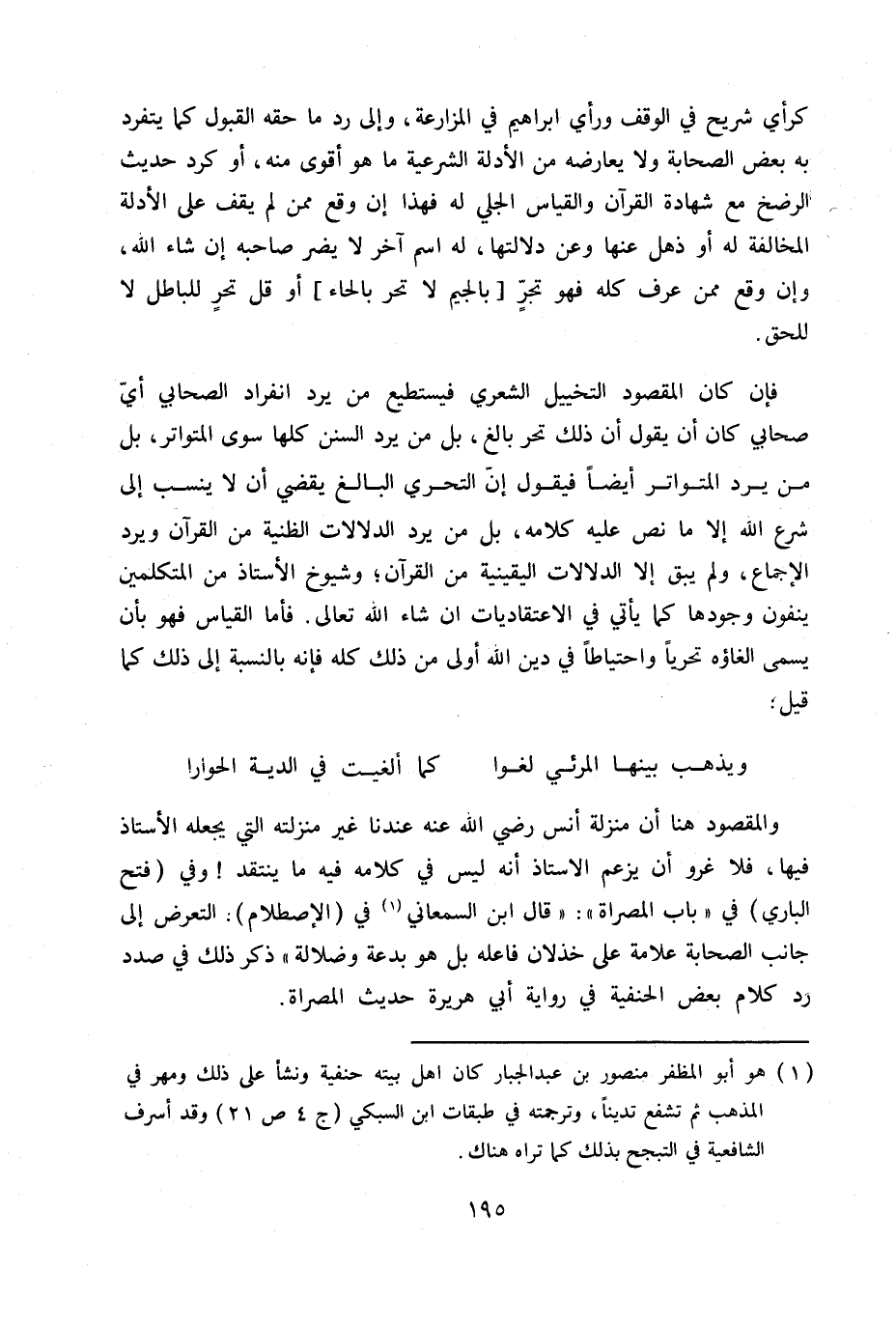 (1) هو أبو المظفر بن عبد الجبار كان أهل بيته حنفية ونشأ على ذلك ومهر في المذهب ثم تشفع تديناً، وترجمته في طبقات ابن السبكي ج 4 ص 21 وقد أسرف الشافعية في التبجح بذلك كما تراه هناك.