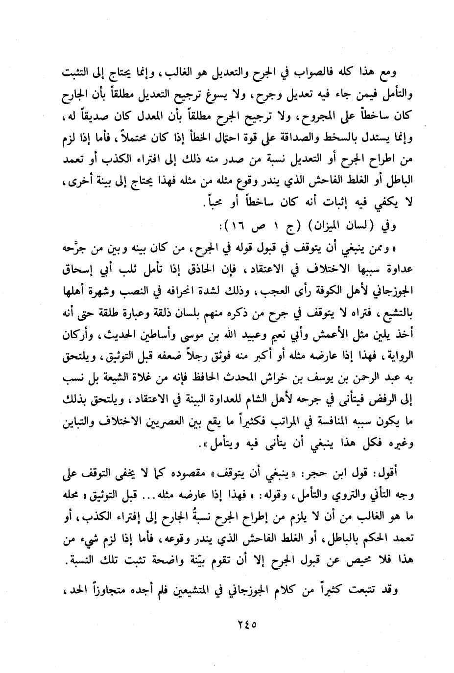 وقد تتبعت كثيراً من كلام الجوزجاني في المتشيعين فلم أجده متجاوزاً الحد،