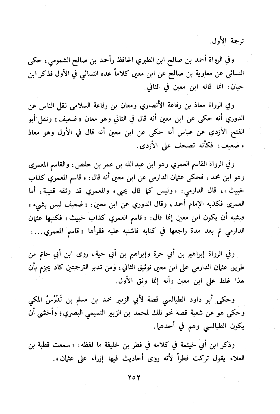 وفي الرواة معاذ بن رفاعة الأنصاري ومعان رفاعة السلامي نقل الناس عن الدوري أنه حكى عن ابن معين أنه قال في الثاني وهو معان «ضعيف» ونقل أبو الفتح الأزدي عن عباس أنه حكى عن ابن معين أنه قال في الأول وهو معاذ «ضعيف» فكأنه تصحف على الأزدي.
