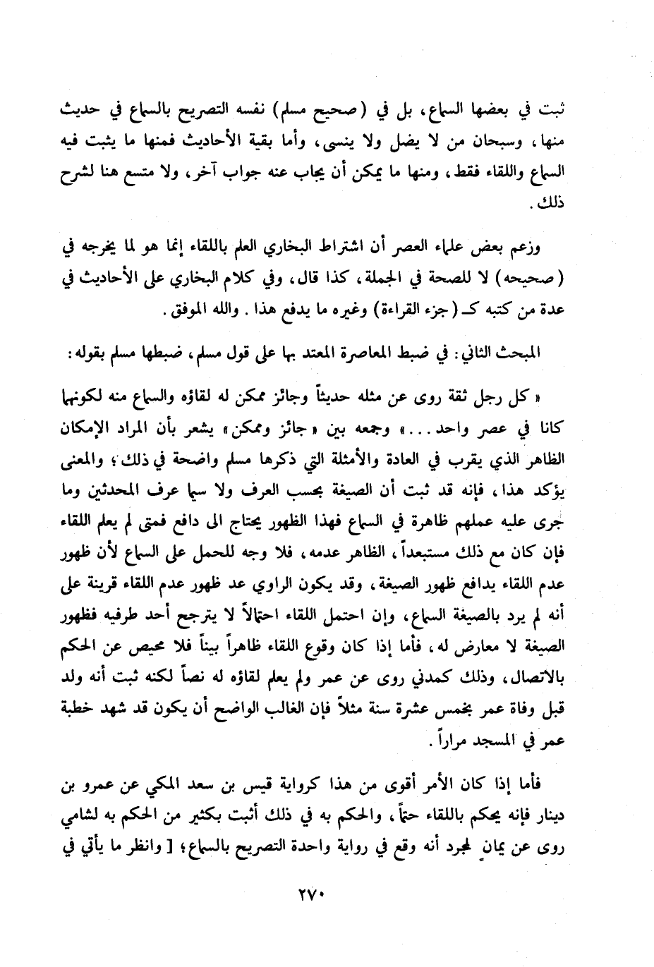 فأما إذا كان الأمر أقوى من هذا كرواية قيس بن سعد المكي عن عمرو بن دينار فأنه يحكم باللقاء حتماً، والحكم به في ذلك أثبت بكثير من الحكم به لشامي روى عن يمان لمجرد أنه وقع في رواية واحدة التصريح بالسماع. «وانظر ما يأتي في