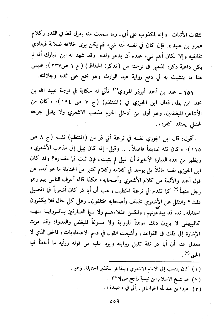 أقول: قال ابن الجوزي نفسه في ترجمة أبي ذر من (المنتظم) نفسه ج 8 ص 115: «كان ثقة ضابطاً فاضلاً ... وقيل: إنه كان يميل إلى مذهب الشعري» ويظهر من هذه العبارة الأخيرة أن الميل لم يثبت، فإن ثبت فما مقداره؟ وقد كان ابن الجوزي نفسه مائلاً بل يوجد في كلامه وكلام كثير من الحنابلة ما هو أبعد عن قول أحمد والأئمة من كلام الأشعري وأصحابه. هكذا قاله أعرف الناس بهم وهو رجل منهم (1) كما تقدم في ترجمة الخطيب. هب أن أبا ذر أشعرياً فما تفصيل ذلك؟ والنقل عن الشعري مختلف وأصحابه مختلفون.