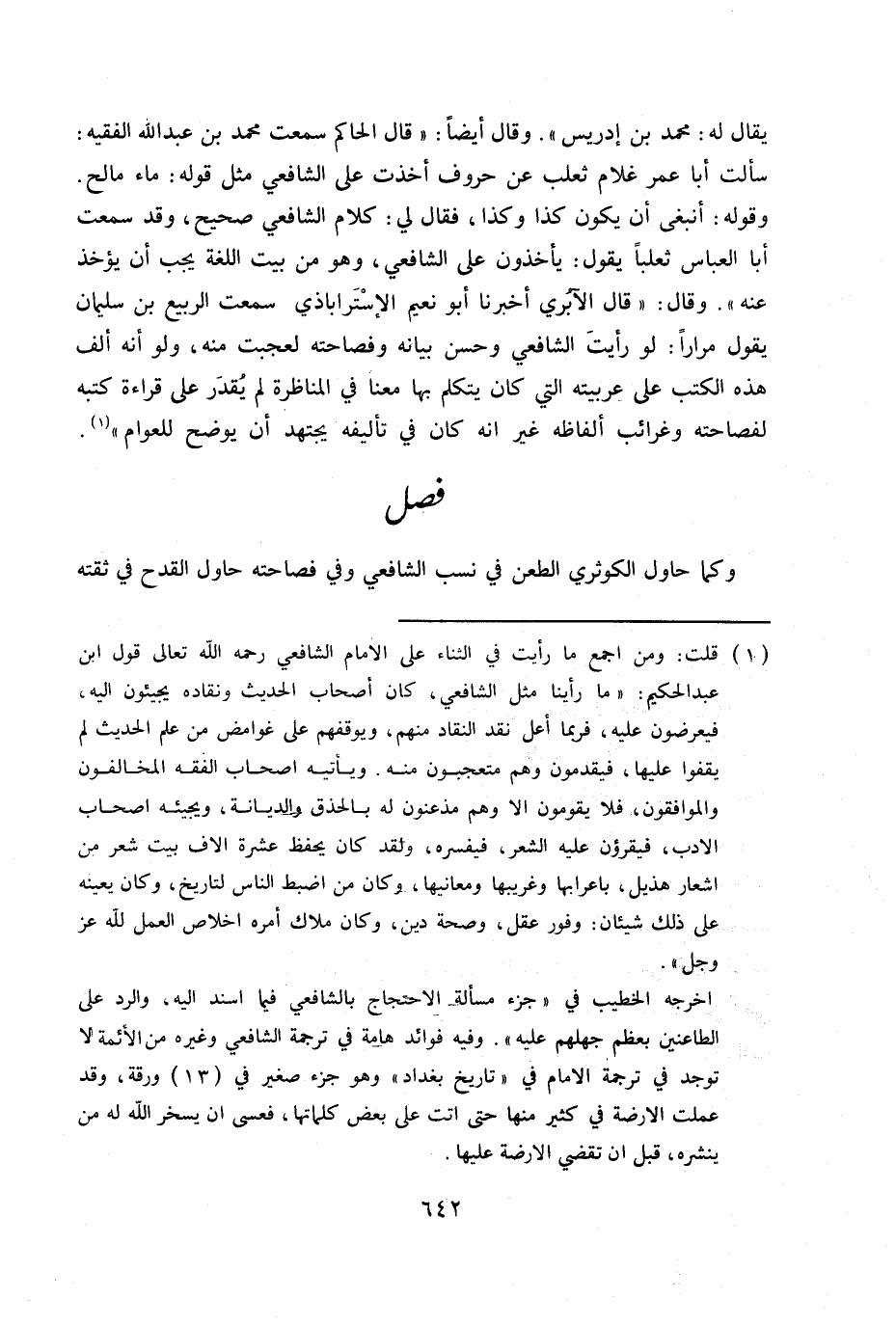 (1) قلت: ومن أجمع ما رأيت في الثناء على الإمام الشافعي رحمه الله تعالى قول ابن عبد الحكم: «ما رأينا مثل الشافعي، كان أصحاب الحديث ونقاده يجيئون إليه، فيعرضون عليه، فربما أعل نقد النقاد منهم، ويوقفهم على غوامض من علم الحديث لم يقفوا عليها، فيقومون وهم متعجبون منه. ويأتيه أصحاب الفقه المخالفون والموافقون، فلا يقومون إلا وهم مذعنون له بالحذق والديانة. ويجيئه أصحاب الأدب، فيقرؤن عليه الشعر، فيفسره، ولقد كان يحفظ عشرة آلاف بيت شعر من أشعار هذيل، بإعرابها وغريبها ومعانيها، وكان من أضبط الناس لتاريخ، وكان يعينه على ذلك شيئان: وفور عقل، وصحة دين، وكان ملاك أمره إخلاص العمل لله عز وجل» .