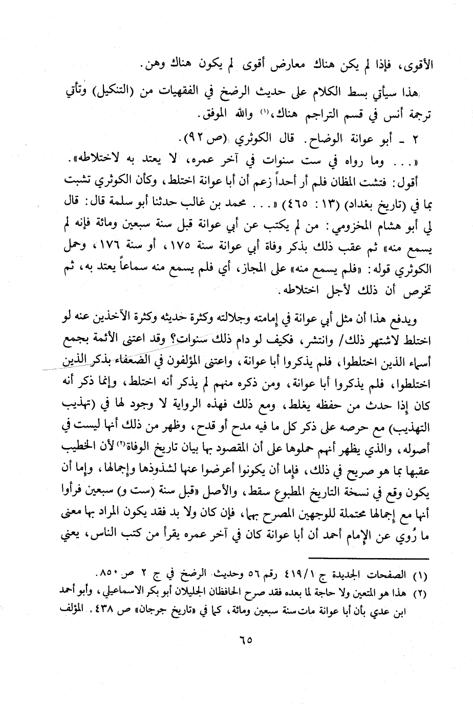 2- أبو عوانة الوضاح. قال الكوثري ص 92: « ... وما رواه في ست سنوات في آخر عمره، لا يعتد به لاختلاطه» .