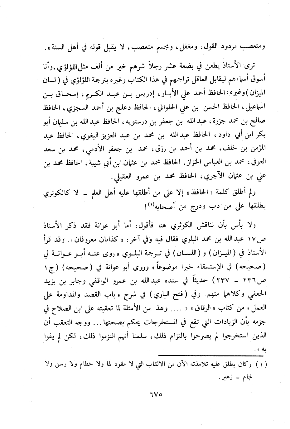 ولم أطلق كلمة «الحافظ» إلا على من أطلقها عليه أهل العلم - لا كالكوثري يطلقها على من دب ودرج من أصحابه!