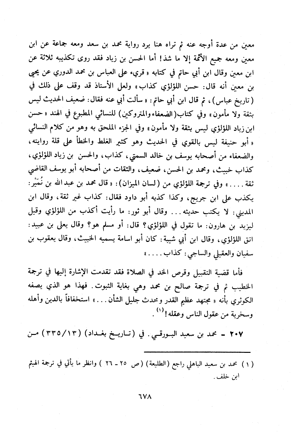 207- محمد بن سعيد البورقي. في (تاريخ بغداد) 13 / 335 من