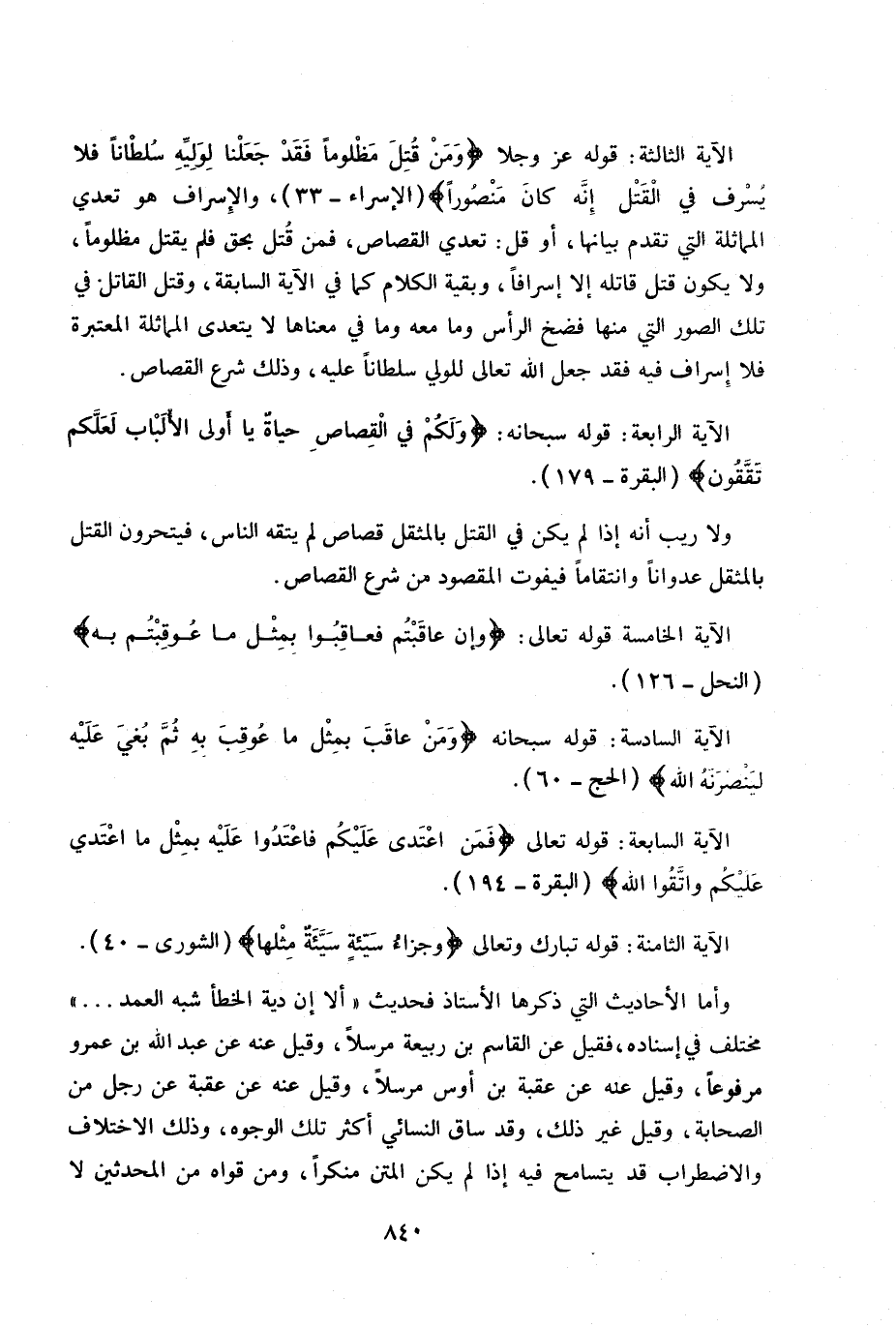 الآية الثامنة: قوله تبارك وتعالى «وجزاء سيئة سيئة مثلها» الشورى - 40