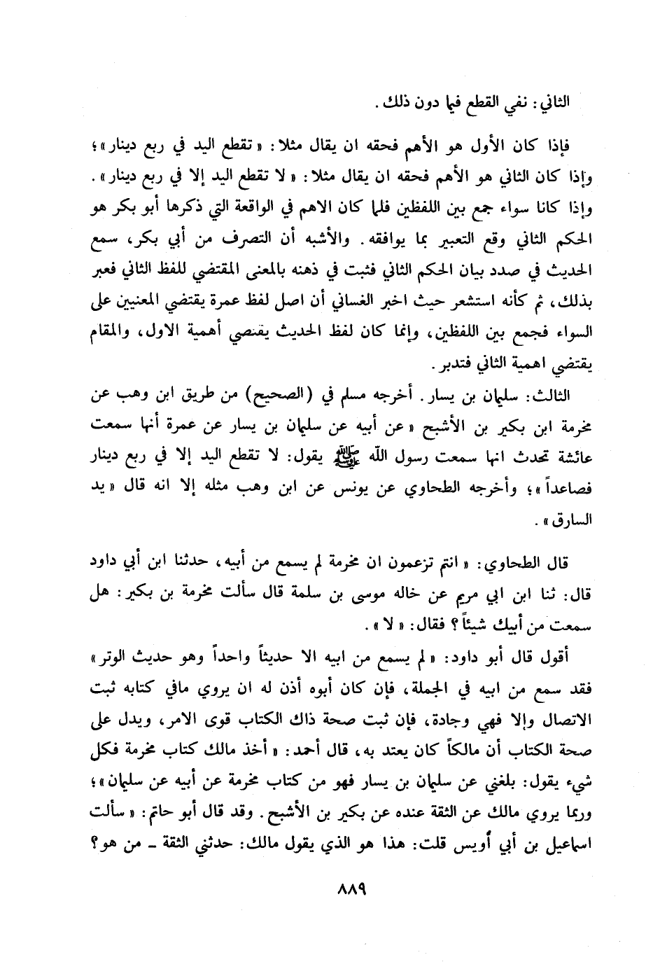 فإذا كان الاول هو الاهم فحقه أن يقال مثلا ً: (تقطع اليد في ربع دينار) . وإذا كان الثاني هو الاهم فحقه أن يقال مثلاً: (لا تقطع اليد إلا في ربع دينار) . وإذا كانا سواء جمع بين اللفظين فلما كان الاهم في الواقعة التي ذكرها أبو بكر هو الحكم الثاني وقع التعبير لما يوافقه. والاشبه أن التصرف من أبي بكر، سمع الحديث في صدد بيان الحكم الثاني.
