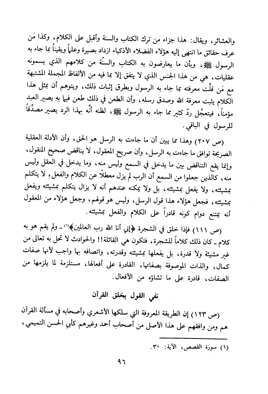 (ص 123) إن الطريقة المعروفة التي سلكها الأشعري وأصحابه في مسألة القرآن هم ومن وافقهم على هذا الأصل من أصحاب أحمد وغيرهم كأبي الحسن التميمي،