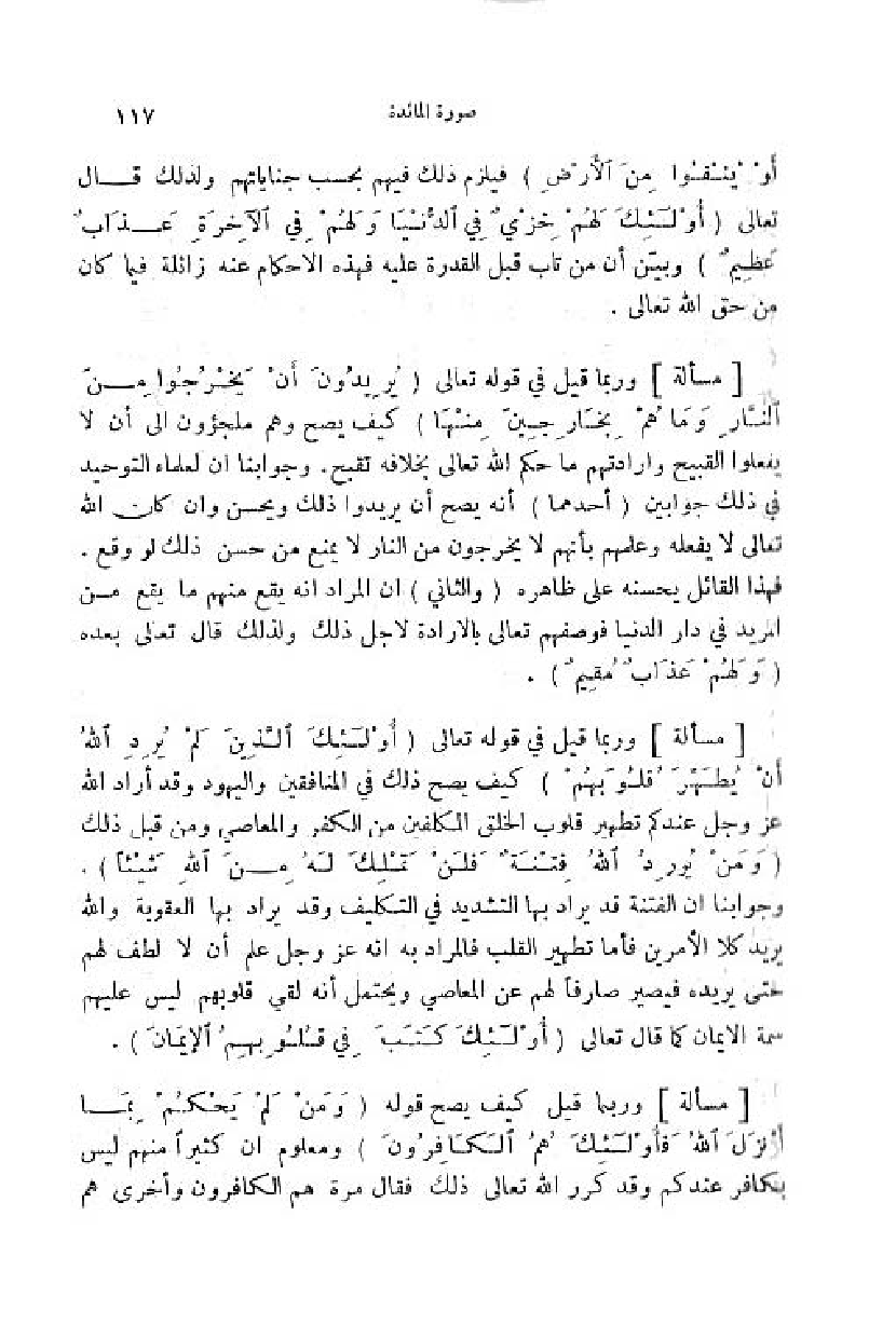 وربما قيل في قوله تعالى (يُرِيدُونَ أَنْ يَخْرُجُوا مِنَ النَّارِ وما هُمْ بِخارِجِينَ مِنْها) كيف يصح وهم ملجئون الى أن لا يفعلوا القبيح وارادتهم ما حكم اللّه تعالى بخلافه تقبح. وجوابنا ان لعلماء التوحيد في ذلك جوابين (أحدهما) أنه يصح أن يريدوا ذلك ويحسن وان كان اللّه تعالى لا يفعله وعلمهم بأنهم لا يخرجون من النار لا يمنع من حسن ذلك لو وقع.