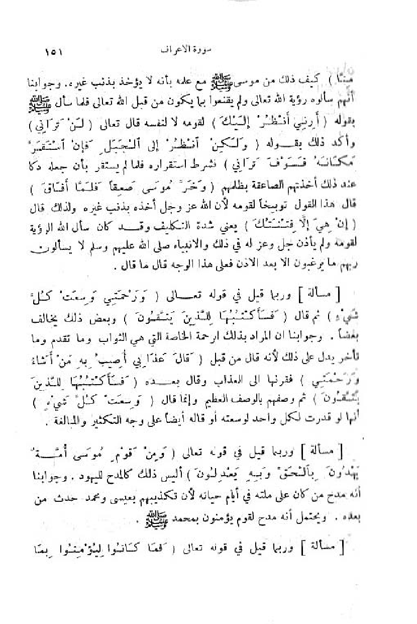 مِنَّا) كيف ذلك من موسى صلّى اللّه عليه وسلم مع علمه بأنه لا يؤخذ بذنب غيره. وجوابنا أنهم سألوه رؤية اللّه تعالى ولم يقنعوا بما يكون من قبل اللّه تعالى فلما سأل صلّى اللّه عليه وسلم بقوله (أَرِنِي أَنْظُرْ إِلَيْكَ) لقومه لا لنفسه قال تعالى (لَنْ تَرانِي) وأكد ذلك بقوله (وَ لكِنِ انْظُرْ إِلَى الْجَبَلِ فَإِنِ اسْتَقَرَّ مَكانَهُ فَسَوْفَ تَرانِي) فشرط استقراره فلما لم يستقر بأن جعله دكا عند ذلك أخذتهم الصاعقة بظلمهم (وَ خَرَّ مُوسى صَعِقاً فَلَمَّا أَفاقَ) قال هذا القول توبيخا لقومه لأن اللّه عز وجل أخذه بذنب غيره ولذلك قال (إِنْ هِيَ إِلَّا فِتْنَتُكَ) يعني شدة التكليف وقد كان سأل اللّه الرؤية لقومه ولم يأذن جل وعز له في ذلك والانبياء صلّى اللّه عليهم وسلم لا يسألون ربهم ما يرغبون الا بعد الاذن فعلى هذا الوجه قال ما قال.
