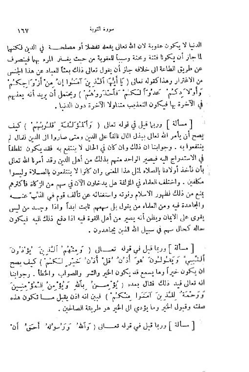 وربما قيل في قوله تعالى (وَ الْمُؤَلَّفَةِ قُلُوبُهُمْ) كيف يصح أن يأمر اللّه تعالى ببذل المال تالفا على الدين ومتى صاروا الى الدين للمال لم ينتفعوا به. وجوابنا ان ذلك وان كان في الحال لا ينتفع به فقد يكون تلطفا في الاستدراج اليه فيصير الواحد منهم بذلك من أهل الدين وقد أمرنا اللّه تعالى بأن نأخذ أولادنا بالصلاة لمثل هذا المعنى وان كانوا لا ينتفعون بالصلاة وليسوا مكلفين. واختلف العلماء في المؤلفة هل يدخلون الآن في سهم من الزكاة فأكثرهم يمنع من ذلك لظهور الاسلام وقوته واستغنائه عن تألف قوم في الذّبّ عنه والمجاهدة فيه ومن العلماء من يقول بل سهمهم ثابت ابدا واذا وجد من ليس يقوى على الايمان ويظن أنه يصير من أهل القوة فيه اذا دفع ذلك اليه فيكون حاله كحال سهم في سبيل اللّه للذين يجاهدون.