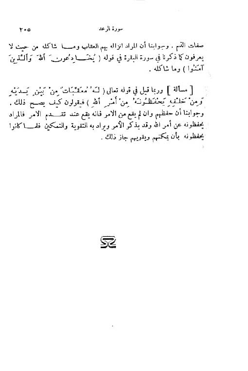 وربما قيل في قوله تعالى (لَهُ مُعَقِّباتٌ مِنْ بَيْنِ يَدَيْهِ ومِنْ خَلْفِهِ يَحْفَظُونَهُ مِنْ أَمْرِ اللَّهِ) فيقولون كيف يصح ذلك.