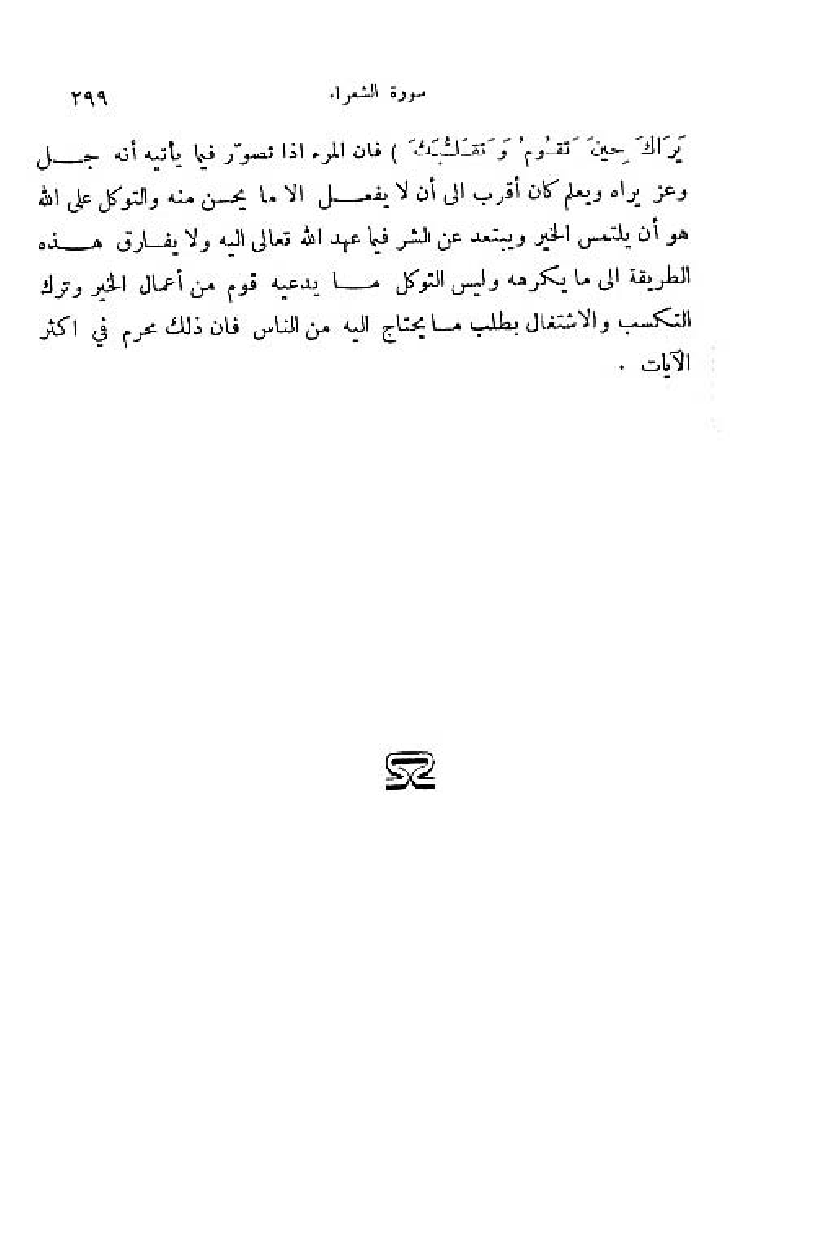 يَراكَ حِينَ تَقُومُ وتَقَلُّبَكَ) فان المرء اذا تصوّر فيما يأتيه أنه جل وعز يراه ويعلم كان أقرب الى أن لا يفعل الا ما يحسن منه والتوكل على اللّه هو أن يلتمس الخير ويبتعد عن الشر فيما عهد اللّه تعالى اليه ولا يفارق هذه الطريقة الى ما يكرهه وليس التوكل ما يدعيه قوم من أعمال الخير وترك التكسب والاشتغال بطلب ما يحتاج اليه من الناس فان ذلك محرم في اكثر الآيات.