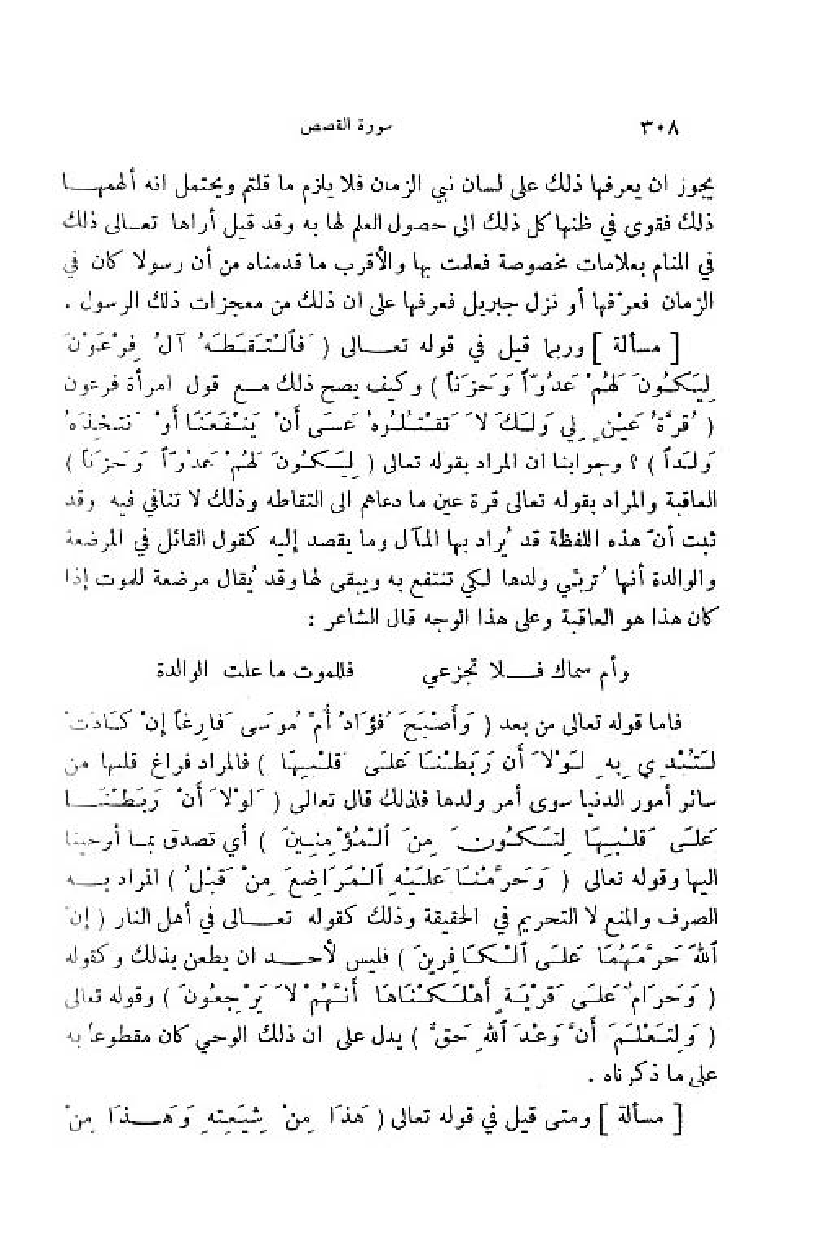 وربما قيل في قوله تعالى (فَالْتَقَطَهُ آلُ فِرْعَوْنَ لِيَكُونَ لَهُمْ عَدُوًّا وحَزَناً) وكيف يصح ذلك مع قول امرأة فرعون (قُرَّتُ عَيْنٍ لِي ولَكَ لا تَقْتُلُوهُ عَسى أَنْ يَنْفَعَنا أَوْ نَتَّخِذَهُ وَلَداً)؟ وجوابنا ان المراد بقوله تعالى (لِيَكُونَ لَهُمْ عَدُوًّا وحَزَناً) العاقبة والمراد بقوله تعالى قرة عين ما دعاهم الى التقاطه وذلك لا تنافي فيه وقد ثبت أنّ هذه اللفظة قد يراد بها المآل وما يقصد إليه كقول القائل في المرضعة والوالدة أنها تربّي ولدها لكي تنتفع به ويبقى لها وقد يقال مرضعة للموت إذا كان هذا هو العاقبة وعلى هذا الوجه قال الشاعر: