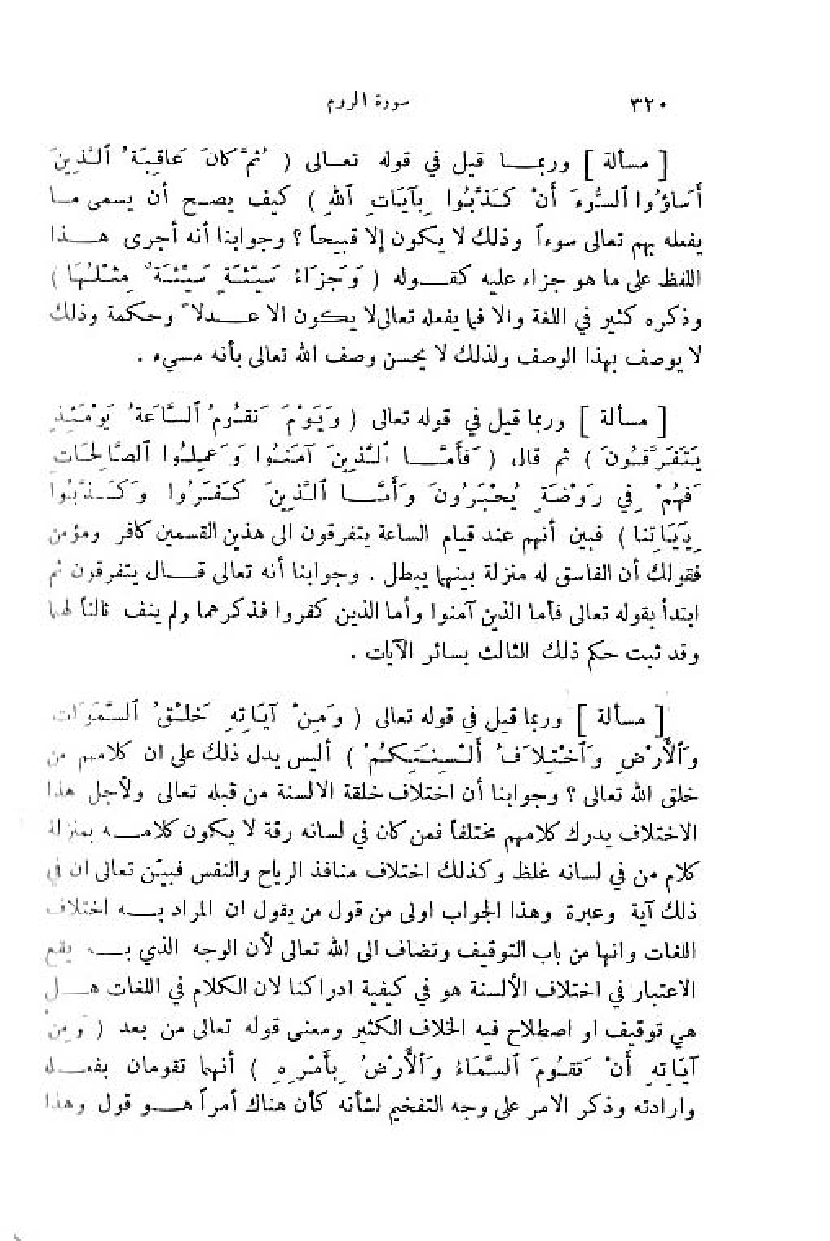 وربما قيل في قوله تعالى (ثُمَّ كانَ عاقِبَةَ الَّذِينَ أَساؤُا السُّواى أَنْ كَذَّبُوا بِآياتِ اللَّهِ) كيف يصح أن يسمى ما يفعله بهم تعالى سوءا وذلك لا يكون إلا قبيحا؟ وجوابنا أنه أجرى هذا اللفظ على ما هو جزاء عليه كقوله (وَ جَزاءُ سَيِّئَةٍ سَيِّئَةٌ مِثْلُها) وذكره كثير في اللغة والا فما يفعله تعالى لا يكون الا عدلا وحكمة وذلك لا يوصف بهذا الوصف ولذلك لا يحسن وصف اللّه تعالى بأنه مسيء.