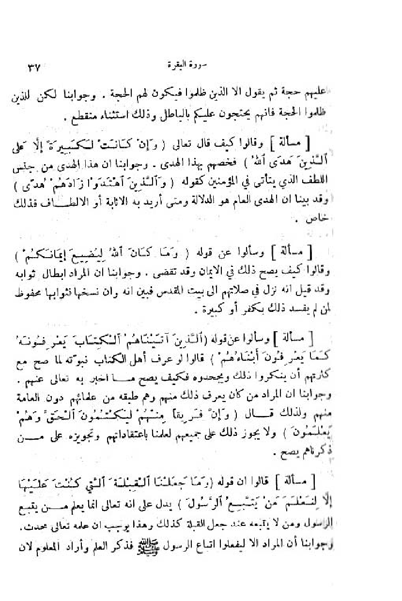 وسألوا عن قوله (وَ ما كانَ اللَّهُ لِيُضِيعَ إِيمانَكُمْ) وقالوا كيف يصح ذلك في الايمان وقد تقضى. وجوابنا ان المراد ابطال ثوابه وقد قيل انه نزل في صلاتهم الى بيت المقدس فبين انه وان نسخها فثوابها محفوظ لمن لم يفسد ذلك بكفر أو كبيرة.