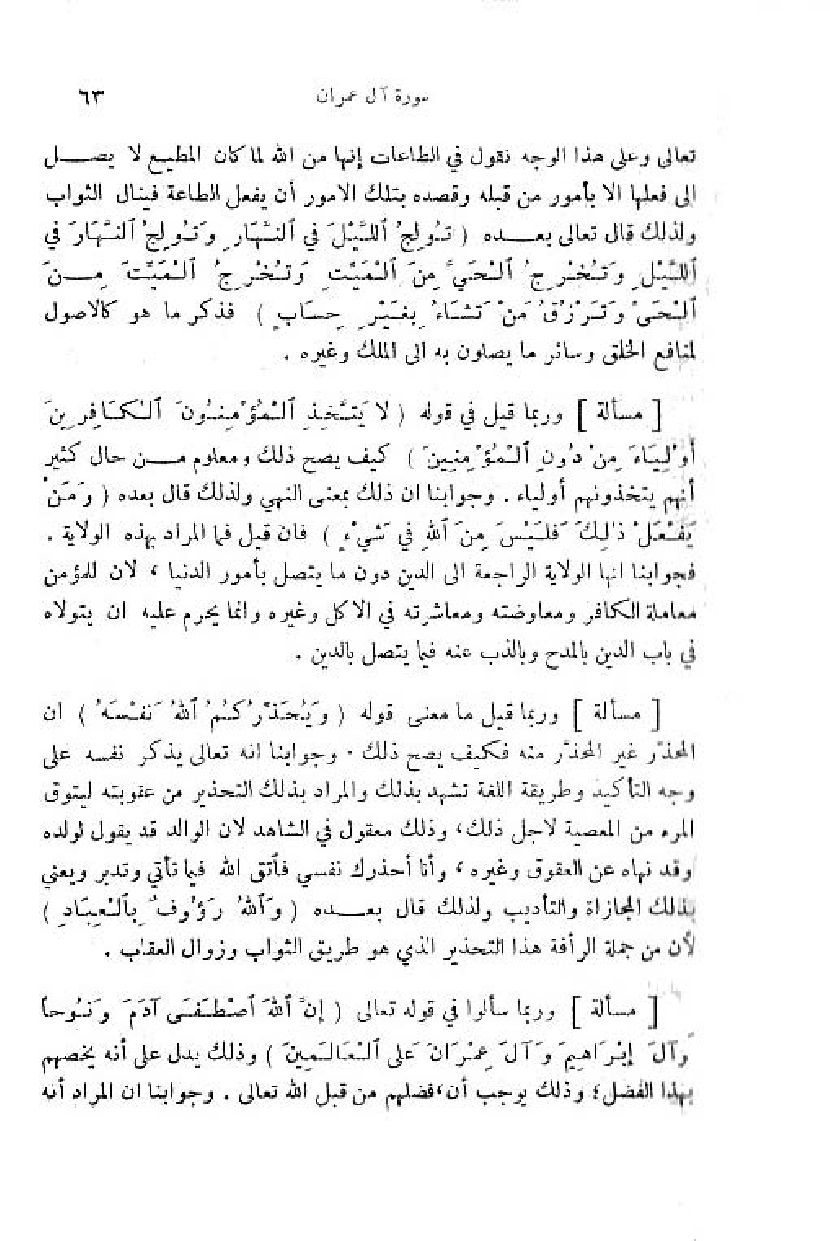 وربما قيل في قوله (لا يَتَّخِذِ الْمُؤْمِنُونَ الْكافِرِينَ أَوْلِياءَ مِنْ دُونِ الْمُؤْمِنِينَ) كيف يصح ذلك ومعلوم من حال كثير أنهم يتخذونهم أولياء. وجوابنا ان ذلك بمعنى النهي ولذلك قال بعده (وَ مَنْ يَفْعَلْ ذلِكَ فَلَيْسَ مِنَ اللَّهِ فِي شَيْءٍ) فان قيل فما المراد بهذه الولاية.
