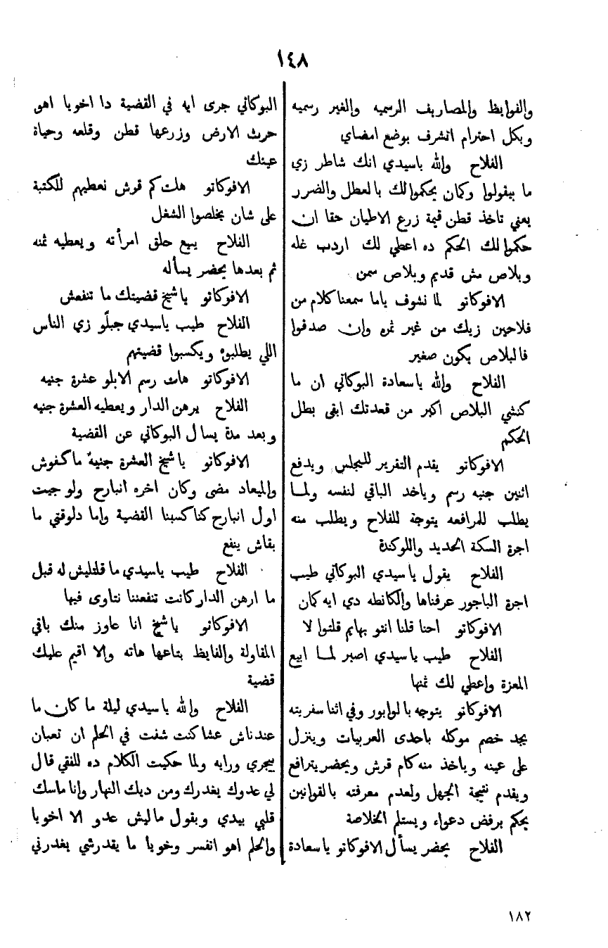 الفلاح يحضر يسأل الافوكاتو ياسعادة البوكاتي جرى ايه في القضية دا اخويا اهو حرث الارض وزرعها قطن وقلعه وحياة عينك