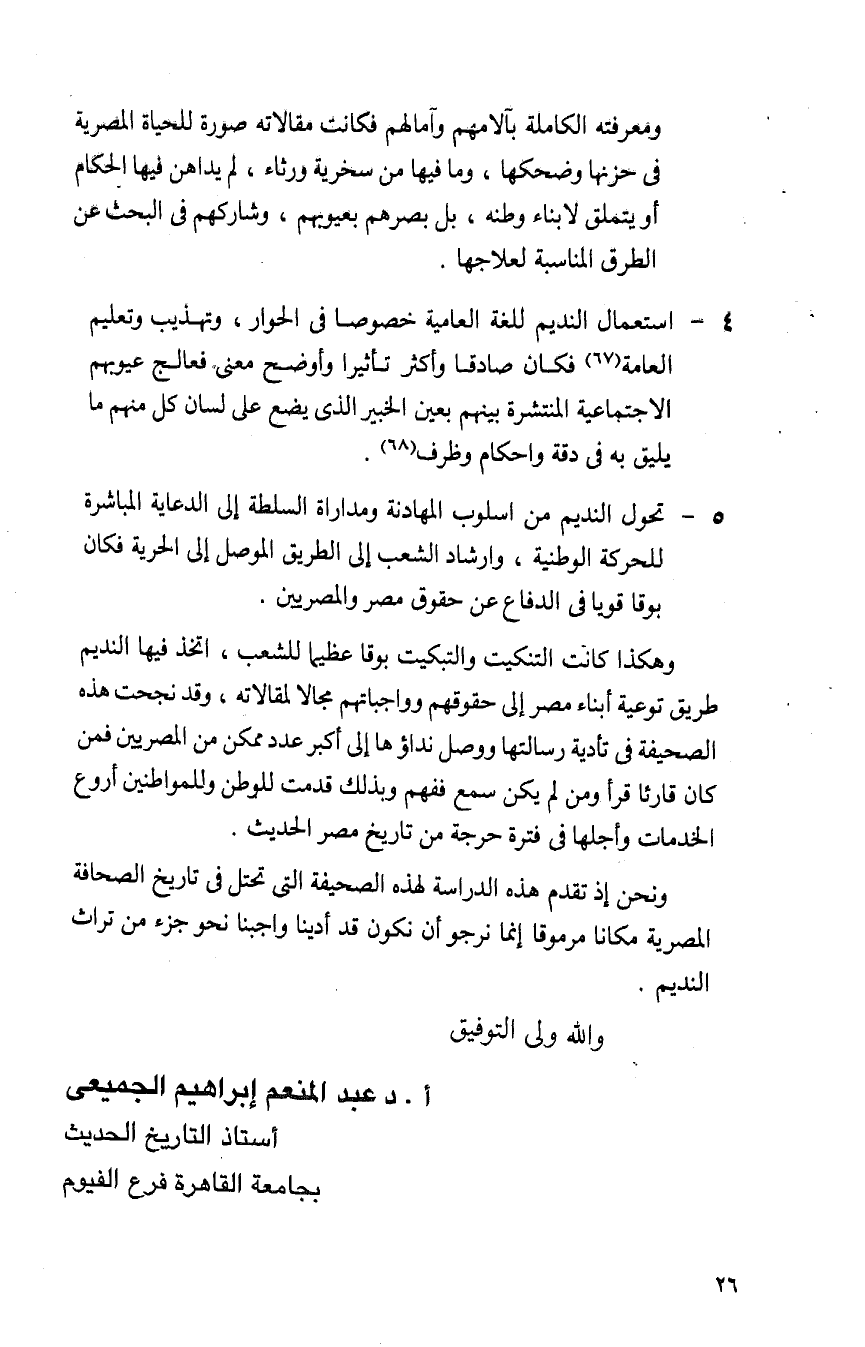 ونحن إذ تقدم هذه الدراسة لهذه الصحيفة التي تحتل في تاريخ الصحافة المصرية مكانًا مرموقًا إنما نرجو أن نكون قد أدينا واجبنا نحو جزء من تراث النديم.