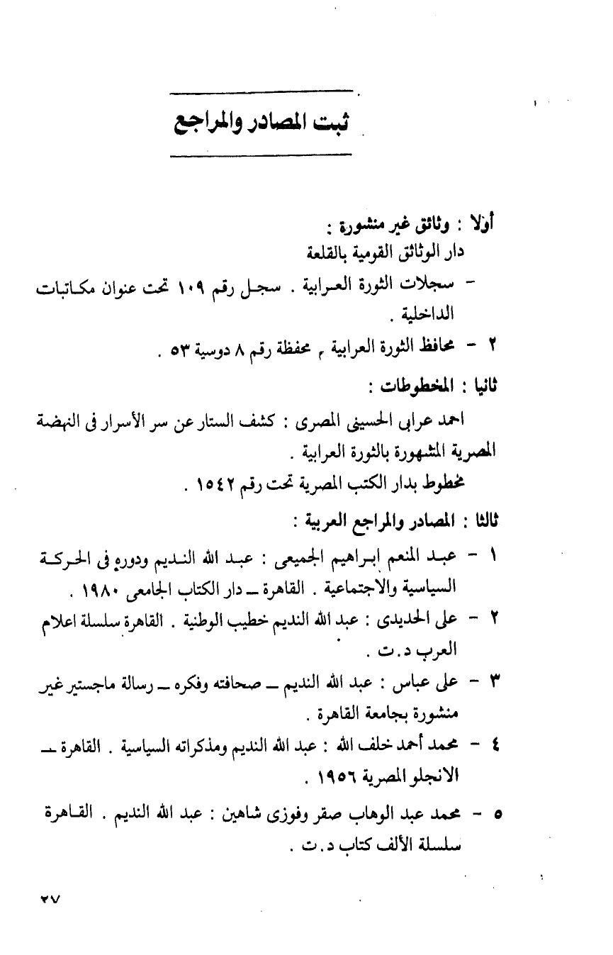 1 - عبد المنعم إبراهيم الجميعي: عبد الله النديم ودوره في الحركة السياسية والاجتماعية. القاهرة - دار الكتاب الجامعي 1980.