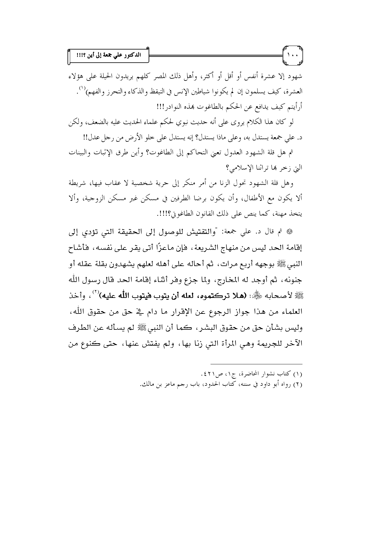 (¬2) رواه أبو داود في سننه، كتاب الحدود، باب رجم ماعز بن مالك.