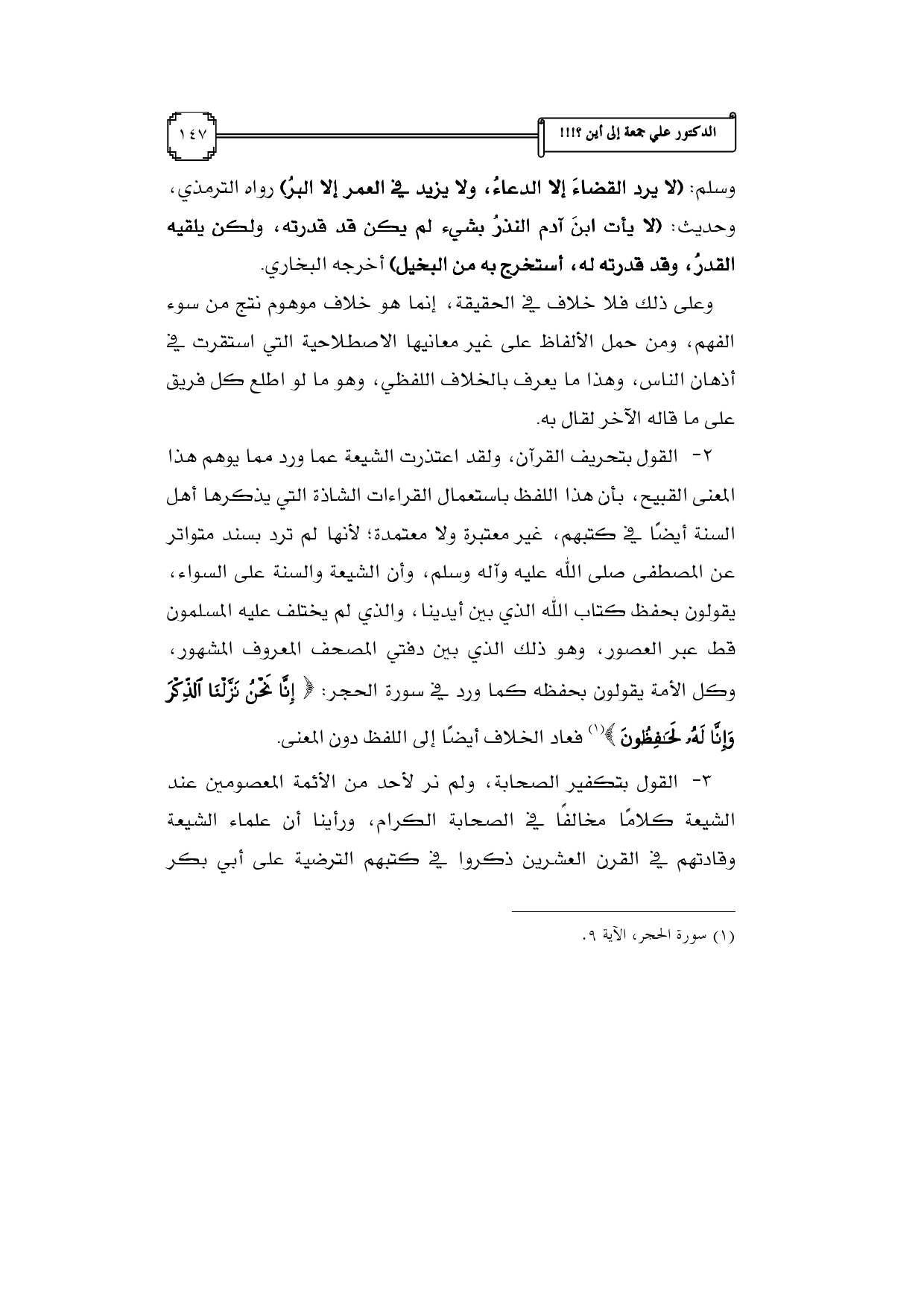 (¬1) سورة الحجر، الآية 9.