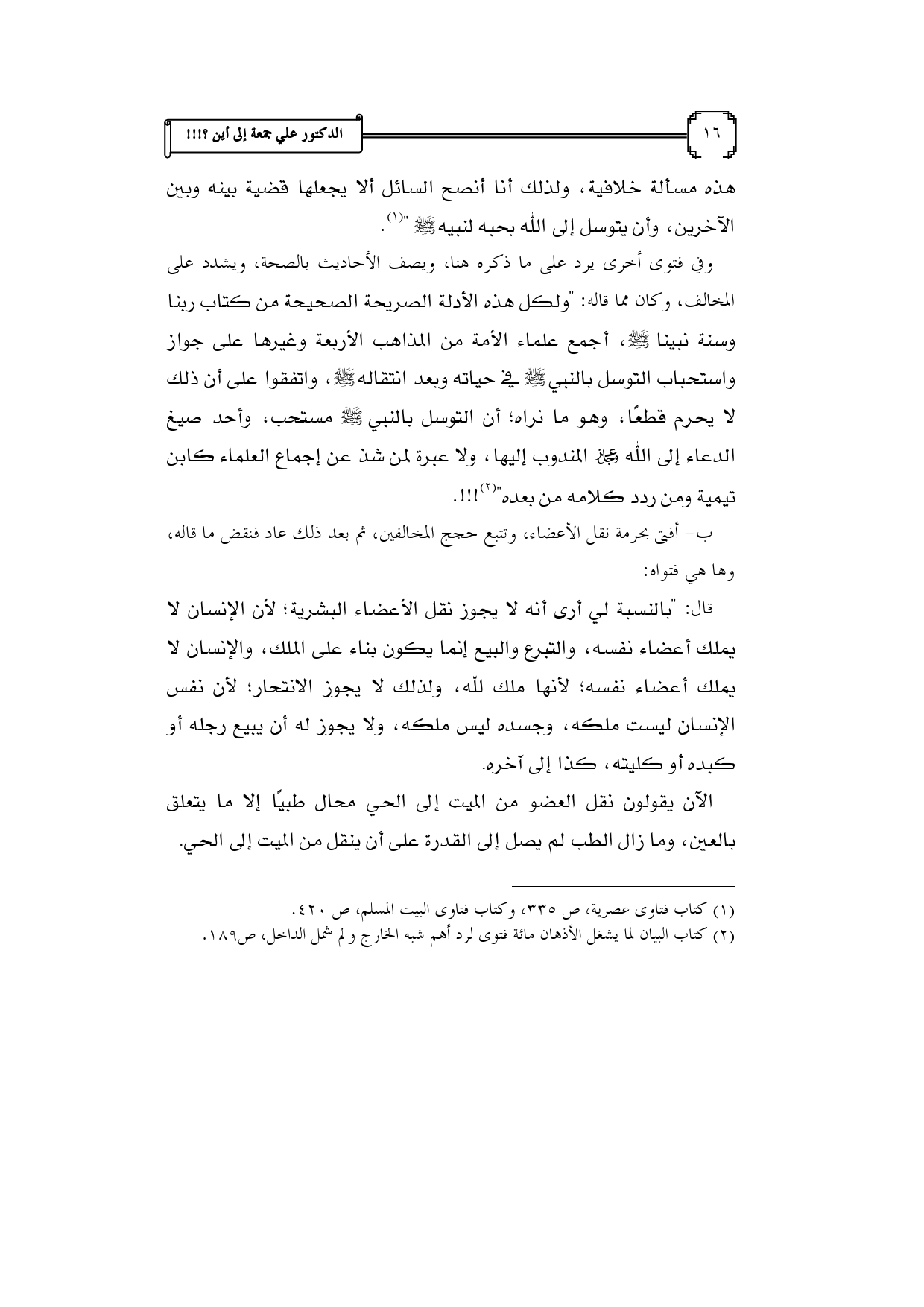 (¬1) كتاب فتاوى عصرية، ص 335، وكتاب فتاوى البيت المسلم، ص 420.