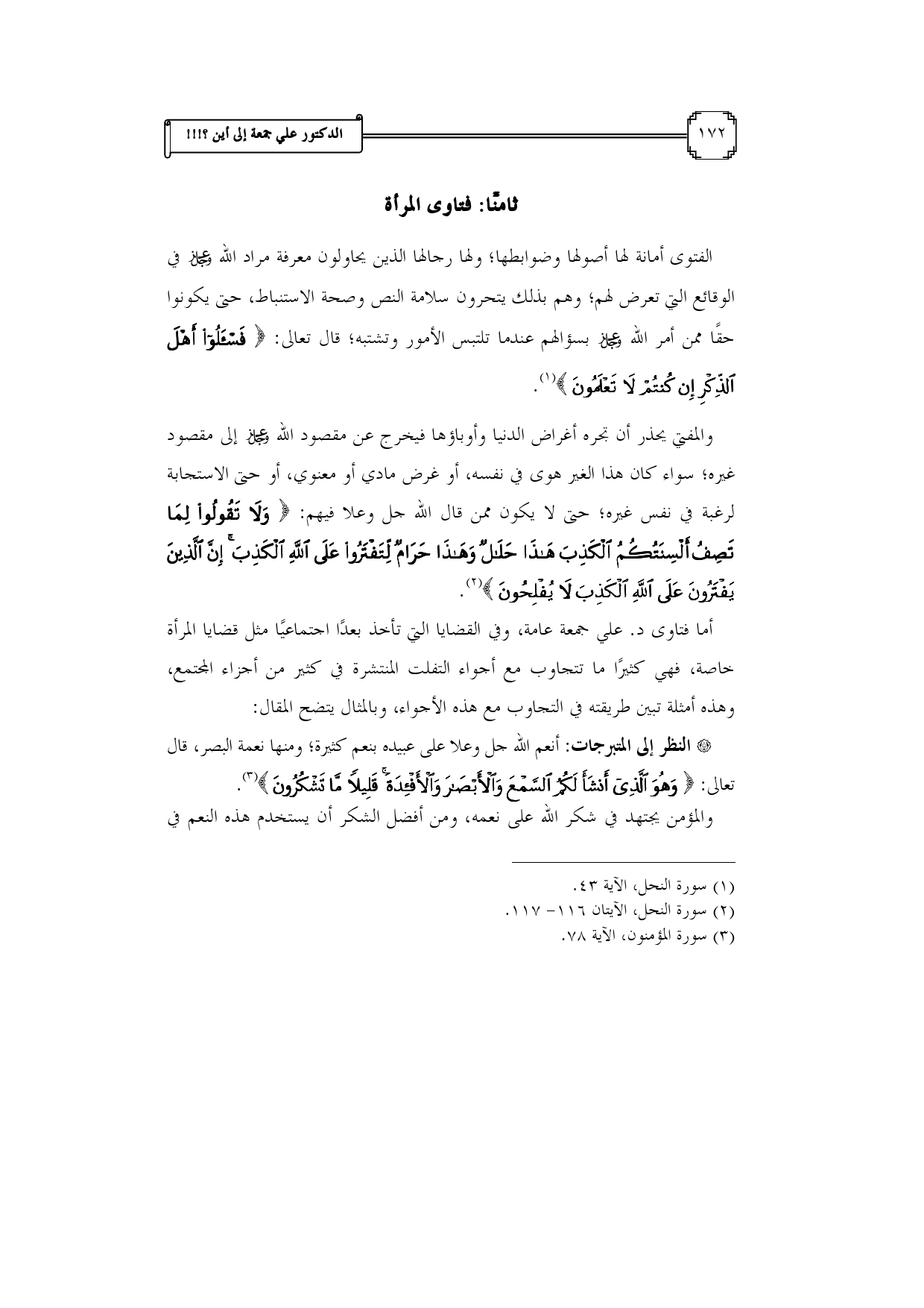 (¬1) سورة النحل، الآية 43.