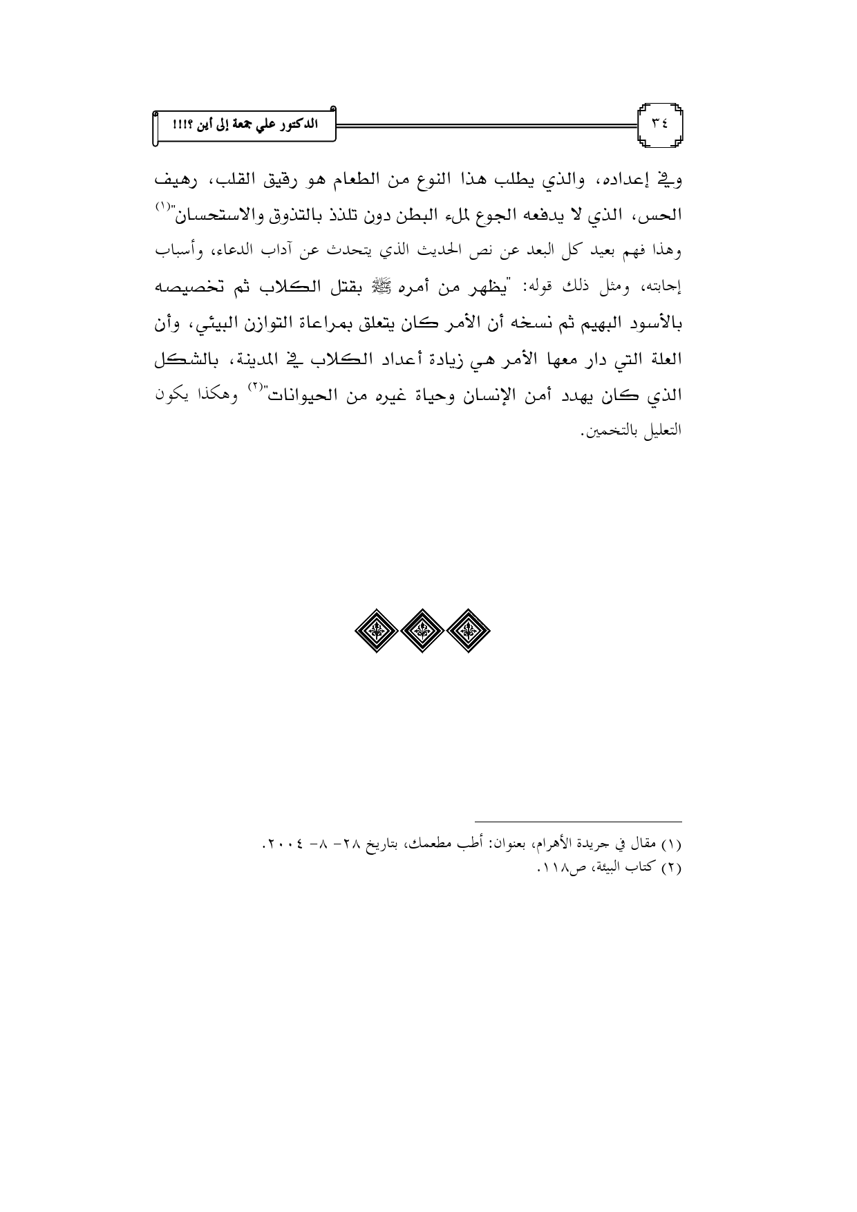 (¬1) مقال في جريدة الأهرام، بعنوان: أطب مطعمك، بتاريخ 28 - 8 - 2004.