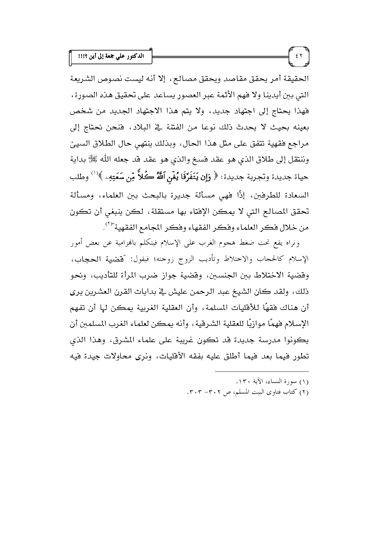 (¬2) كتاب فتاوى البيت المسلم، ص 302 - 303.