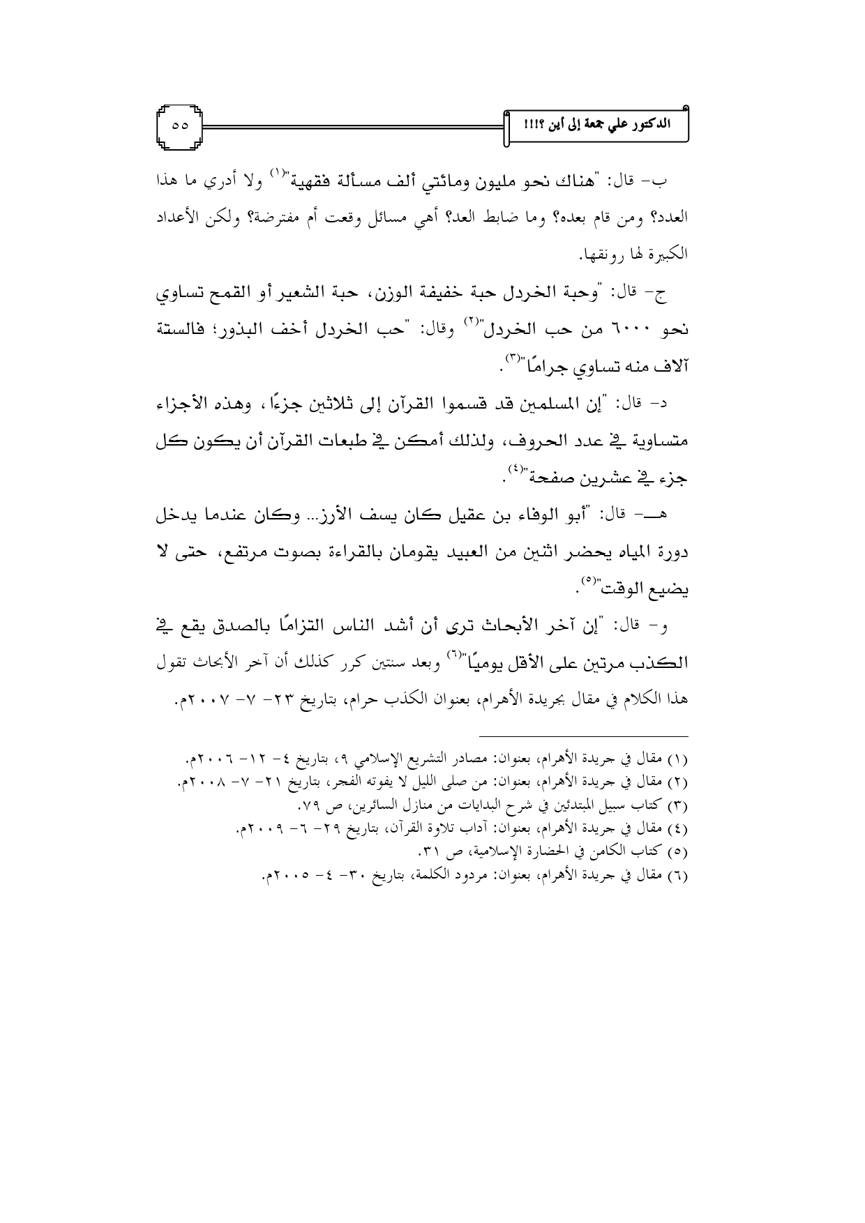 (¬1) مقال في جريدة الأهرام، بعنوان: مصادر التشريع الإسلامي 9، بتاريخ 4 - 12 - 2006م.