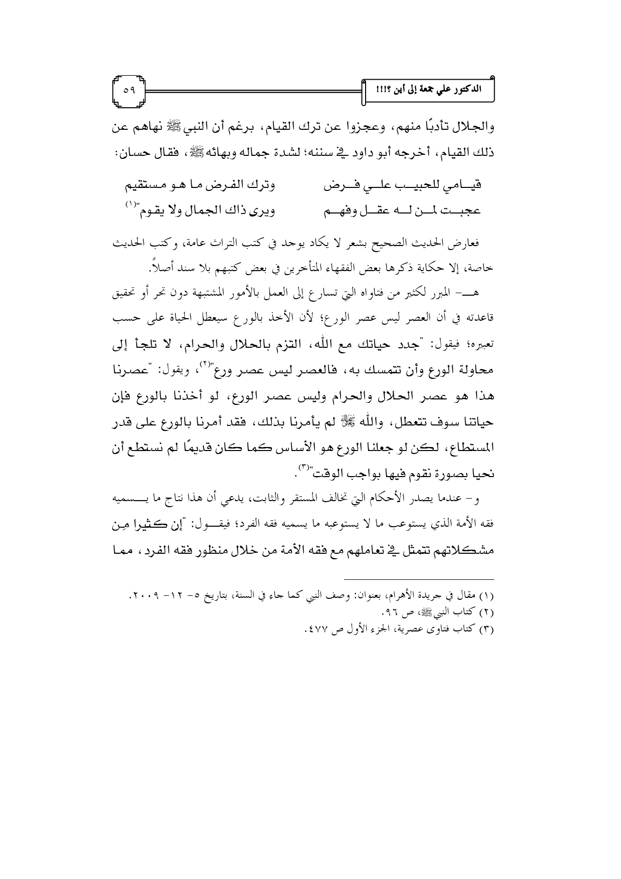 (¬3) كتاب فتاوى عصرية، الجزء الأول ص 477.