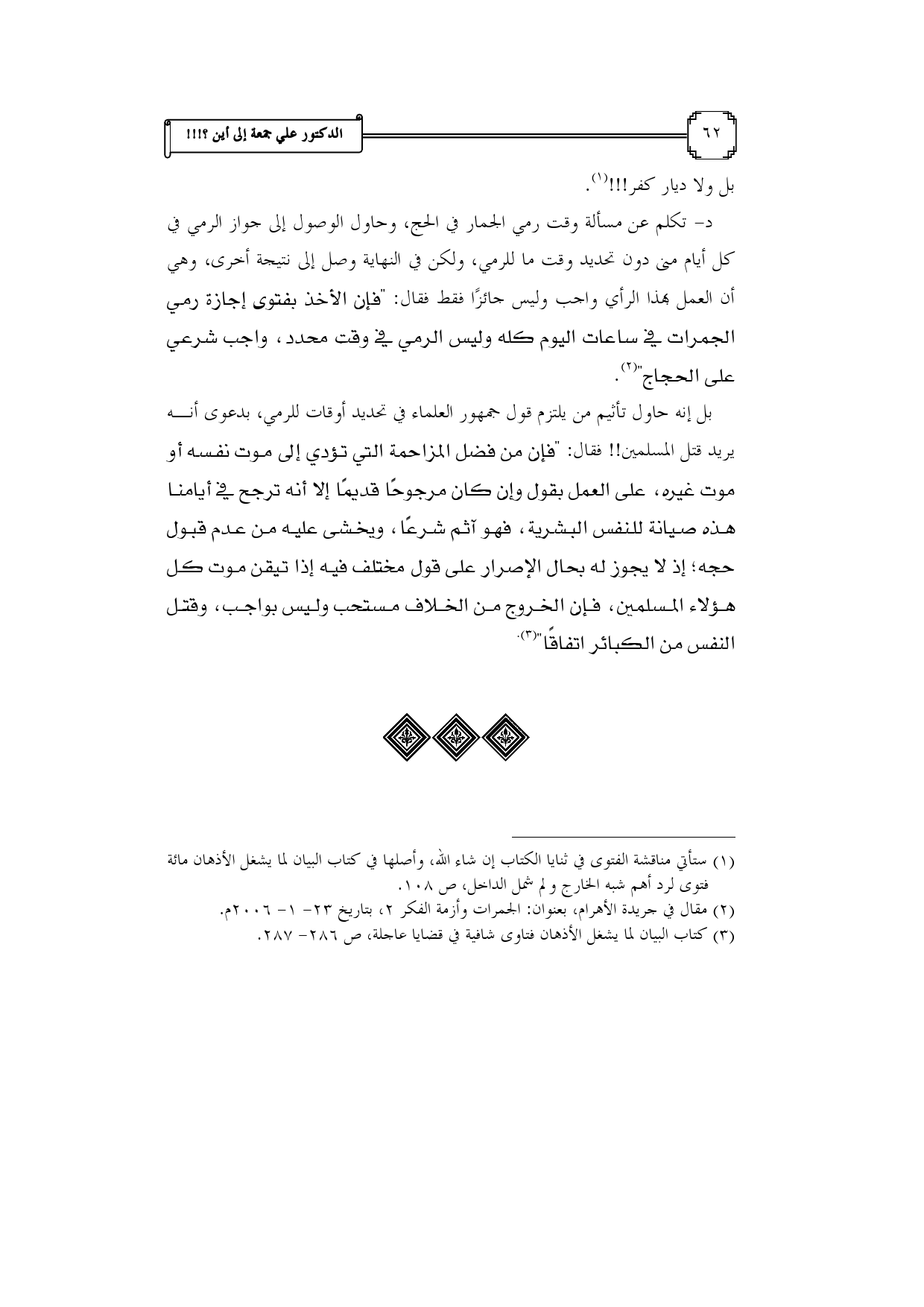 (¬2) مقال في جريدة الأهرام، بعنوان: الجمرات وأزمة الفكر 2، بتاريخ 23 - 1 - 2006م.