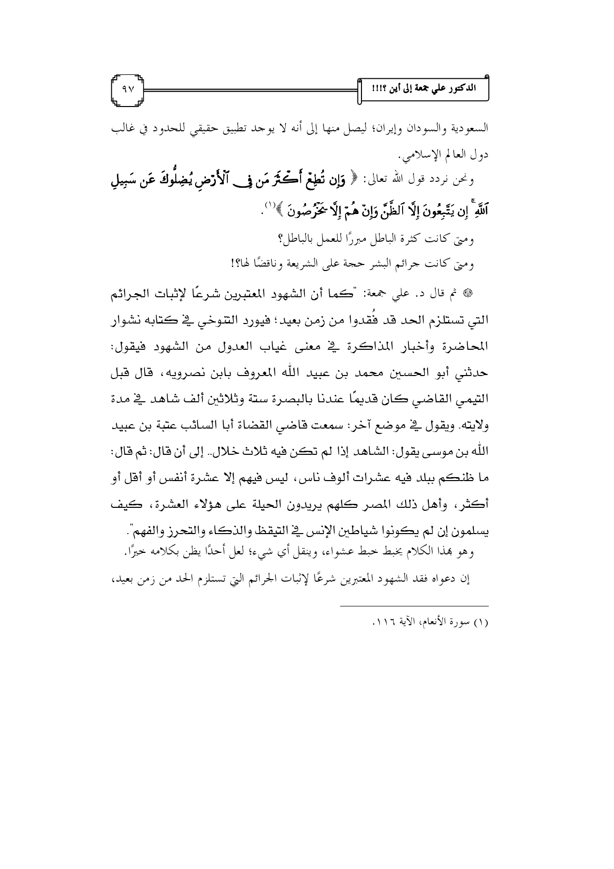 (¬1) سورة الأنعام، الآية 116.