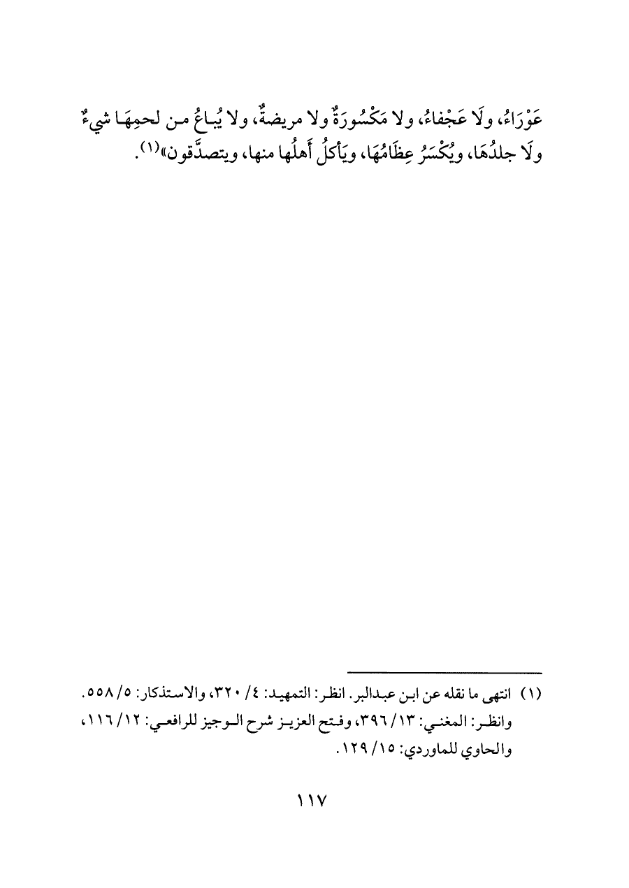 (¬١) انتهى ما نقله عن ابن عبدالبر. انظر: التمهيد: ٤/ ٣٢٠، والاستذكار: ٥/ ٥٥٨. وانظر: المغني: ١٣/ ٣٩٦، وفتح العزيز شرح الوجيز للرافعي: ١٢/ ١١٦، والحاوي للماوردي: ١٥/ ١٢٩.