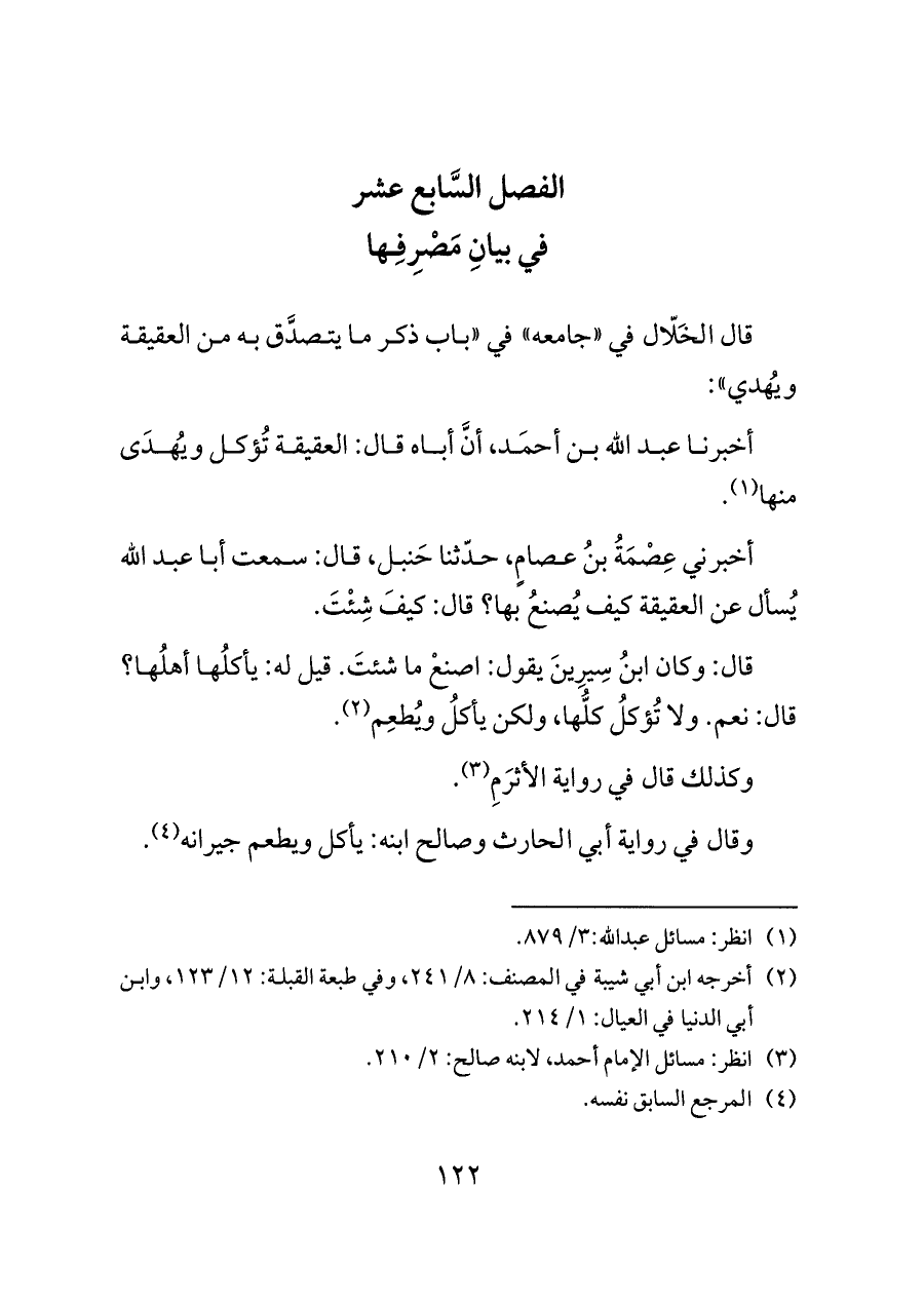 قال الخَلّال في "جامعه" في "باب ذكر ما يتصدَّق به من العقيقة ويُهدي":